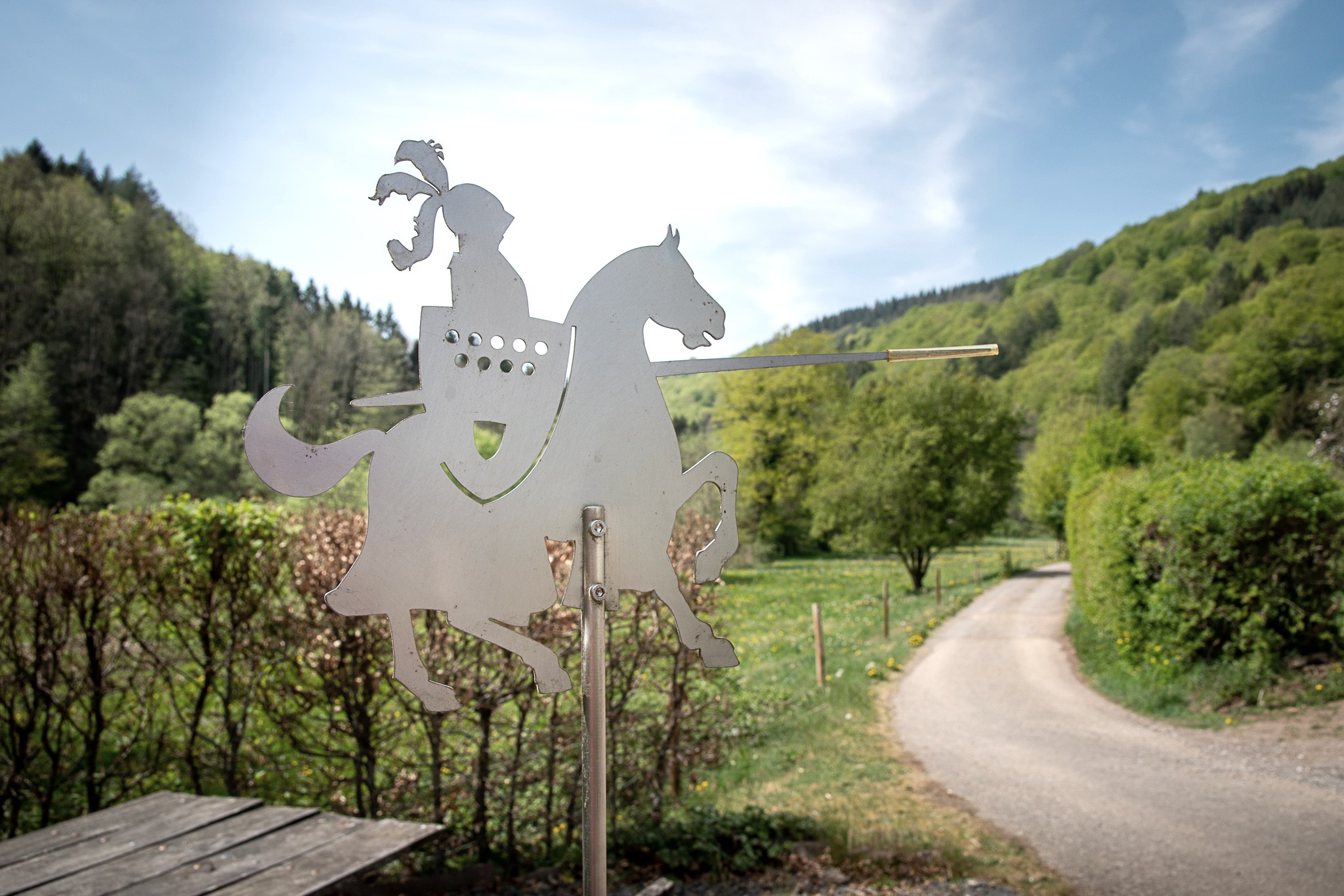 Die Kyll, mit ihrem beruhigenden Plätschern ist zeitweilig Ihr Wegbegleiter auf diesem ca. 3 km langen Rundweg. Neben Kräutern, Wiesen, Hecken und Wäldern säumen sich am Wegesrand schroffe Felsformationen des rotleuchtenden Buntsandsteins. Zu den Höhepunkten des Spaziergangs zählt das imposante Schloss Malberg, dessen Gärten in der Saison Sonntags bis Freitags zugänglich sind (Öffnungszeiten beachten). Das Schloss kann während einer Führung besucht werden.