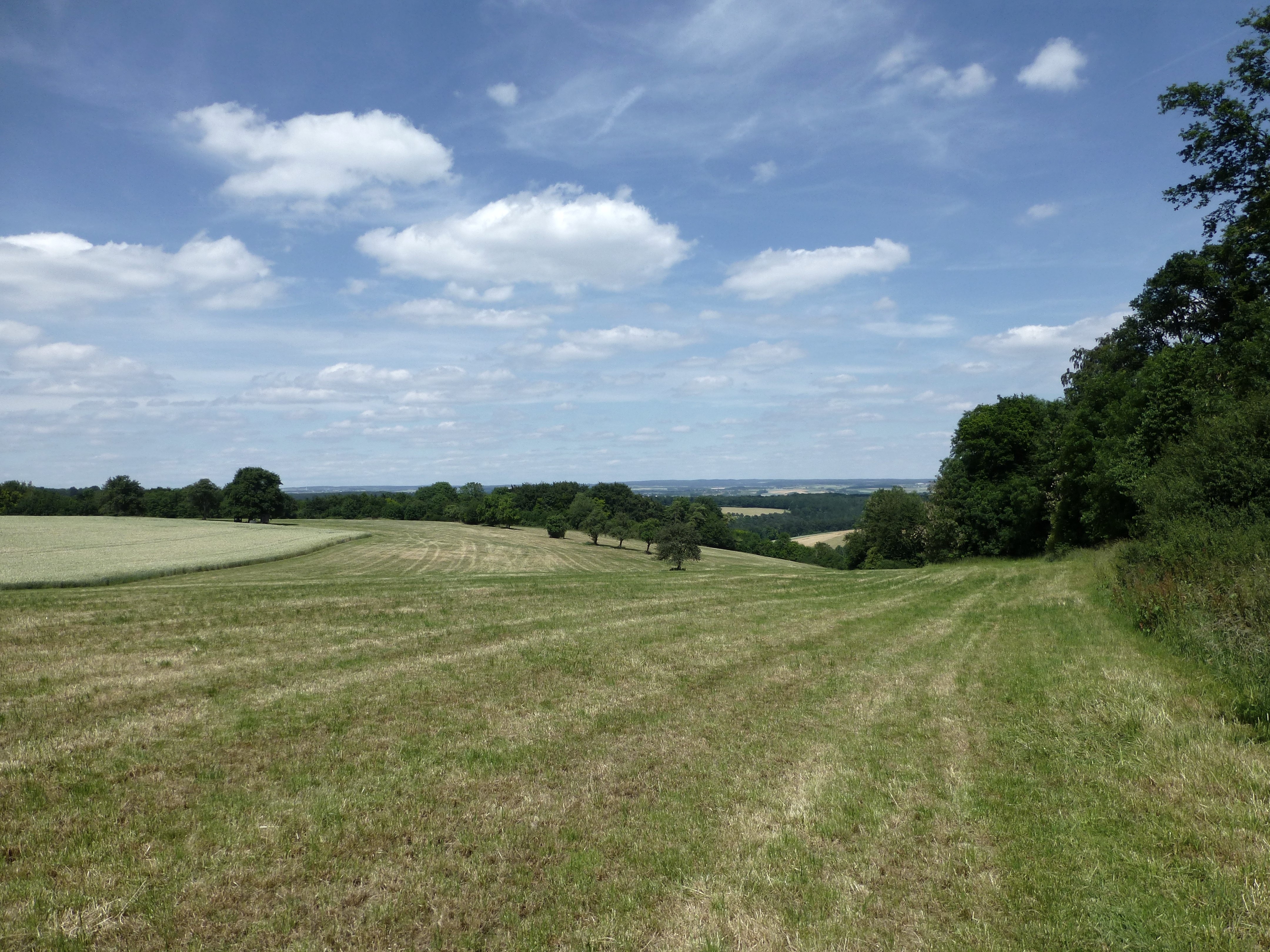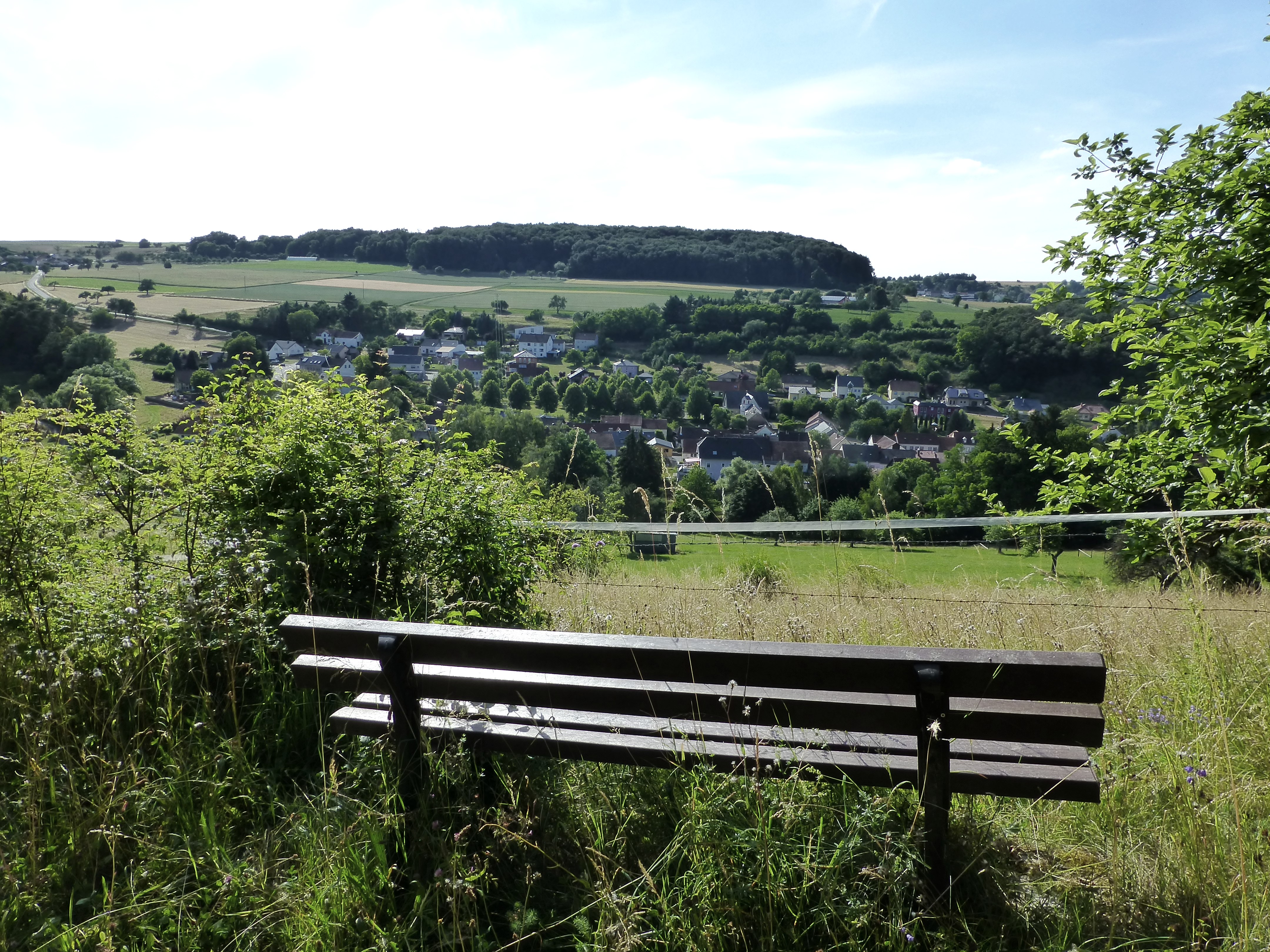Die stillen Wege dieser Etappe sind besonders überraschend, wenn man die Nähe zu Bitburg und dessen verkehrsreicher Umgebung bedenkt. Sobald wir von der Kyll durch den Johannesgraben nach oben und ins Freie gekommen sind, wandern wir auf einsamen Wegen von Dorf zu Dorf und erhalten, da der Waldanteil gering ist, fast durchgehend wunderbare Weitblicke in diese verträumte Landschaft. Unterwegs passieren wir die Dörfer Sülm, Trimport und Dahlem, schauen nach einem kurzen Aufstieg zurück auf die durchwanderte Strecke und besonders weit nach Norden, ehe wir über die Eselsley, die mit einer spektakulären Sage verbunden ist, nach Auw hinuntersteigen.