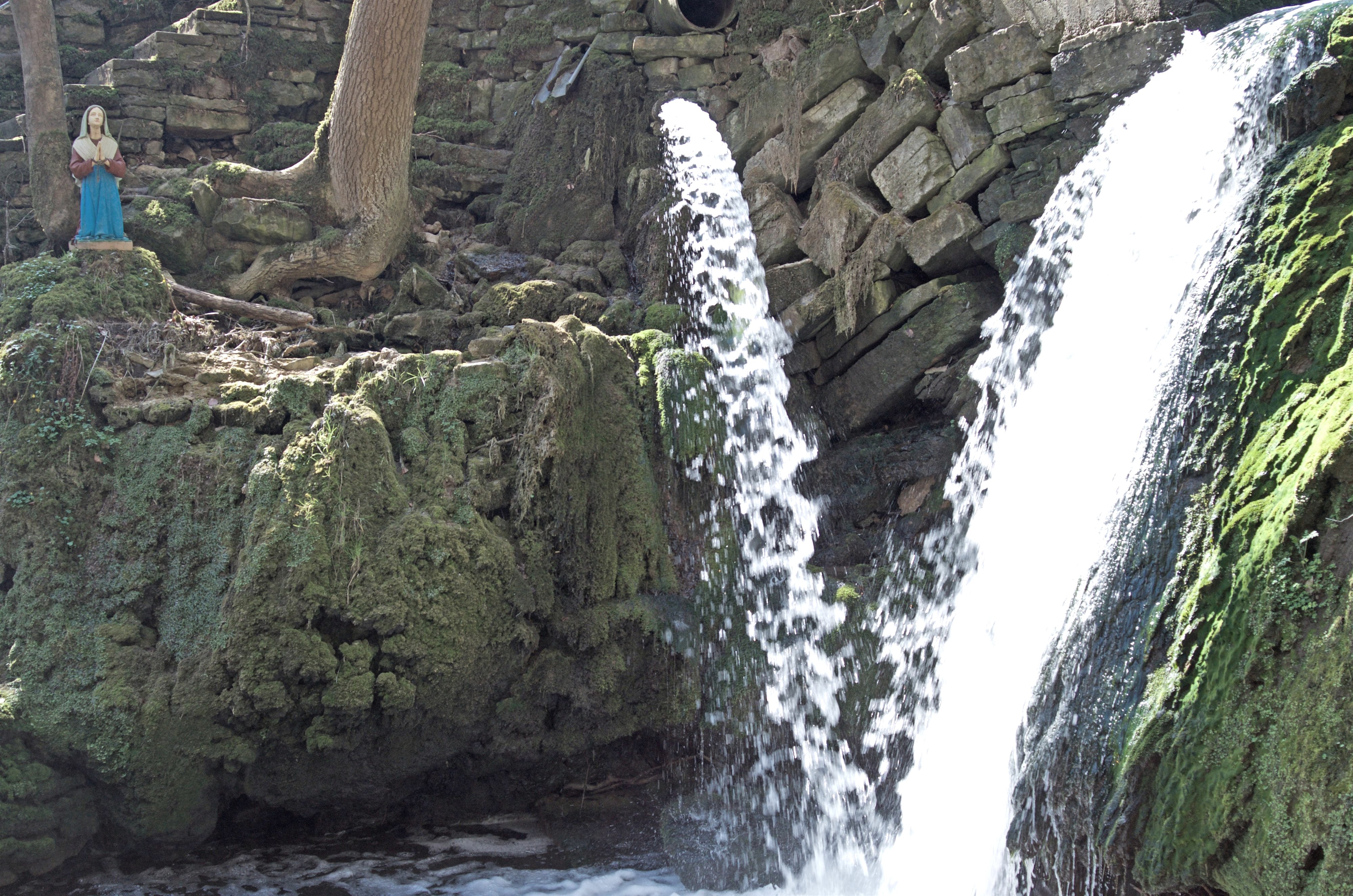 Östlich von Bitburg, ca. 3 km entfernt, liegt in einer idyllischen Kalkschlucht das Albachtal. Treppen aus Naturstein (Vorsicht Rutschgefahr) führen zu dem verwunschen Ort der Mariengrotte. Links und rechts säumen Moosflächen, Farne und Klee den Weg. Nach kurzer Zeit eröffnet sich der Blick auf einen Wasserfall und die Mariengrotte. Der Albach bildet mehrere kleine Wasserfälle bis er in das breitere Albachtal fließt. Der größte Wasserfall ist an der im Tal gelegenen Mariengrotte zu finden. Sie ist seit Generationen ein Ort der Marienverehrung und Ziel vieler Pilger. Die älteste Tafel stammt aus dem Jahre 1940. In der Grotte befindet sich eine kleine Wasserquelle, die von Besuchern als Weihwasser genutzt wird. An der Gedenkstätte sitzt zusätzlich eine kniende Maria auf der gegenüberliegenden Seite der dominierenden Marienstatue.
