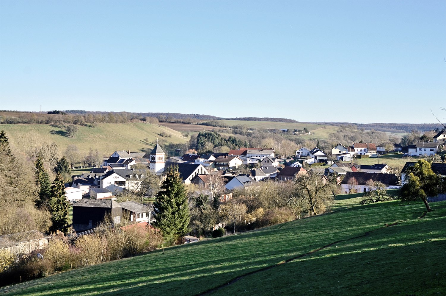 Der Rundwanderweg ist von beiden Seiten ausgeschildert, sodass jeder Wanderer die Wanderrichtung selber bestimmen kann. Unser Weg führt durch die Kirchstraße, vorbei an der Pfarrkirche Sankt Maximin.