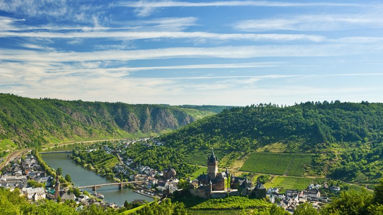 Romantische Weindörfer, verträumte Fachwerkstädtchen (Bernkastel-Kues und Cochem), mittelalterliche Burgen, Entdeckungsreise per Bus und Schiff entlang der Uferwege und Weinberge auf der Mosella