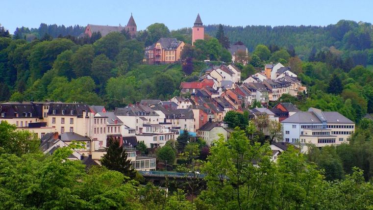 Über den Bergsattel mit den Gründerzeithäusern der Hochstraße geht es zur Stiftsstraße, der ehemaligen Burgstadt der Trierer Bischöfe. die Stiftstraße hat ihre alte Enge weitgehend bewahrt und auch manch altes Gemäuer. Vorbei am alten Bergfried gelangt man zum Stiftsbezirk und der Stiftskirche, die einer der bedeutendsten gotischen Kirchenbauten der Eifel ist und eine Fülle von Kunstschätzen beherbergt. In der Abgeschiedenheit des Kreuzgangs fühlt man sich in die mittelalterliche Welt der Stiftsherren zurückversetzt.