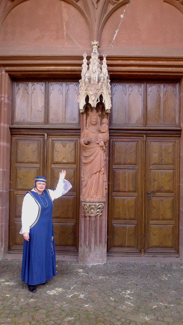 Gertrudis von Romairovilla führt Sie auf eine kleine Zeitreise durch die Geschichte Kyllburgs und seiner Stiftskirche. Der Rundgang beginnt am Anfang der Hochstraße (vor dem Eifeler Hof). Von dort geht es in die vermutlich ursprünglich ältesten Teile Kyllburgs rund um St. Maximin. Die heutige Kirche wurde nach dem Krieg anstelle der zerstörten spätmittelalterlichen Pfarrkirche gebaut. Wahrscheinlich stand an dieser Stelle schon die älteste Kirche der karolingischen Zeit, als Kyllburg Urpfarrei war und dieser Stadtteil zur Abtei Prüm gehörte.