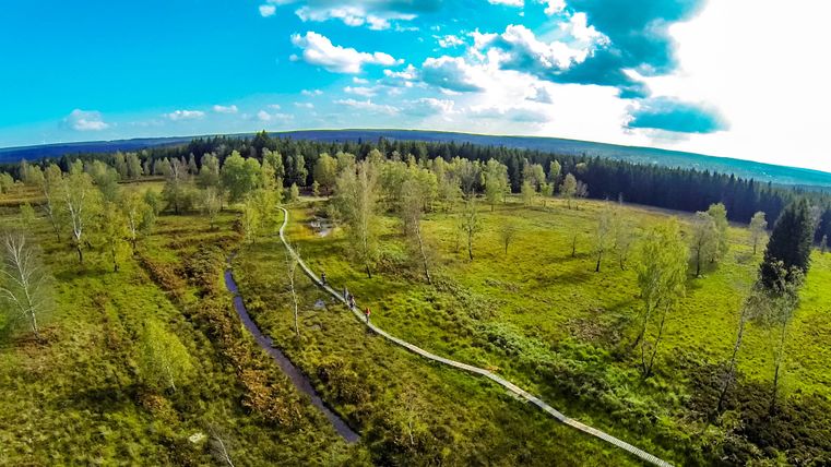 Fahrt über den deutsch-belgischen Grenzübergang Losheimer Graben in die Heckenlandschaft der Nordeifel. Hohe Buchenhecken und dichte Feldhecken prägen diese eigenartige Landschaft. Kurzer Spaziergang über Holzstege im Moorgebiet.