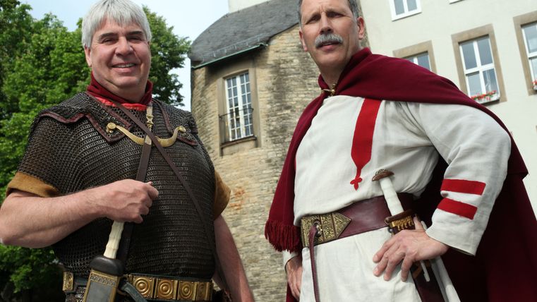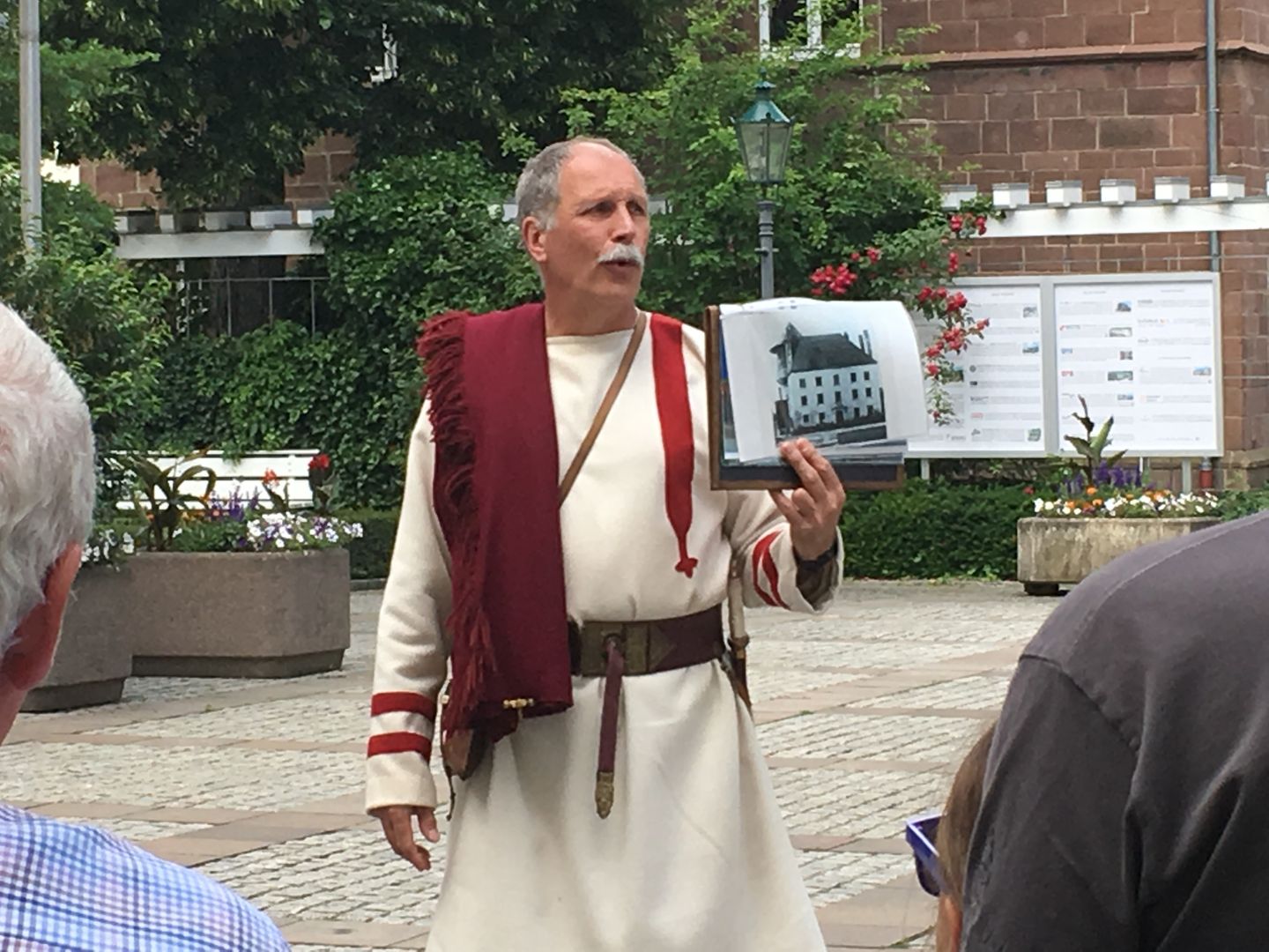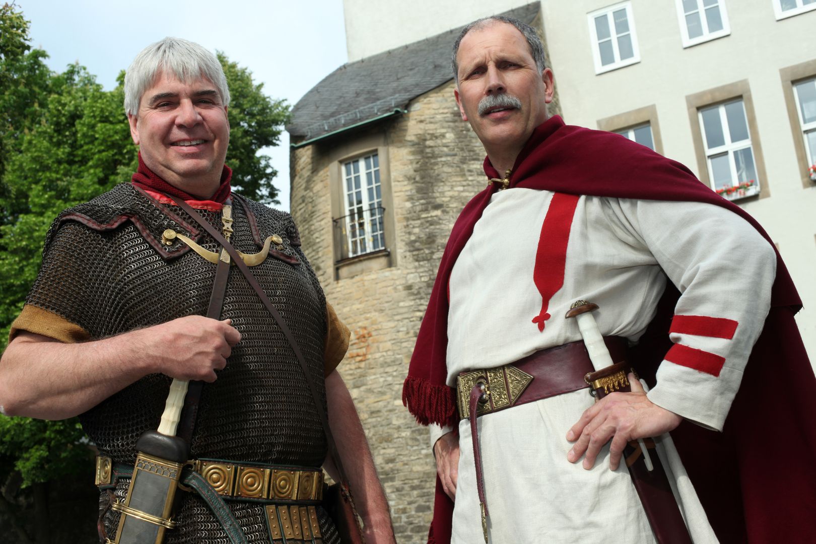 Ein seltener Anblick: ein mit kompletter römischer Uniform ausgestatteter Soldat führt Gruppen durch das römische Bitburg. Dabei erzählt er die Geschichte und Anekdoten, rund um das Leben der Römer, die vor 2000 Jahren den Grundstein für das heutige Bitburg legten. In zeitaufwendiger Handarbeit wurden die Uniformen und Bekleidungsstücke gefertigt.