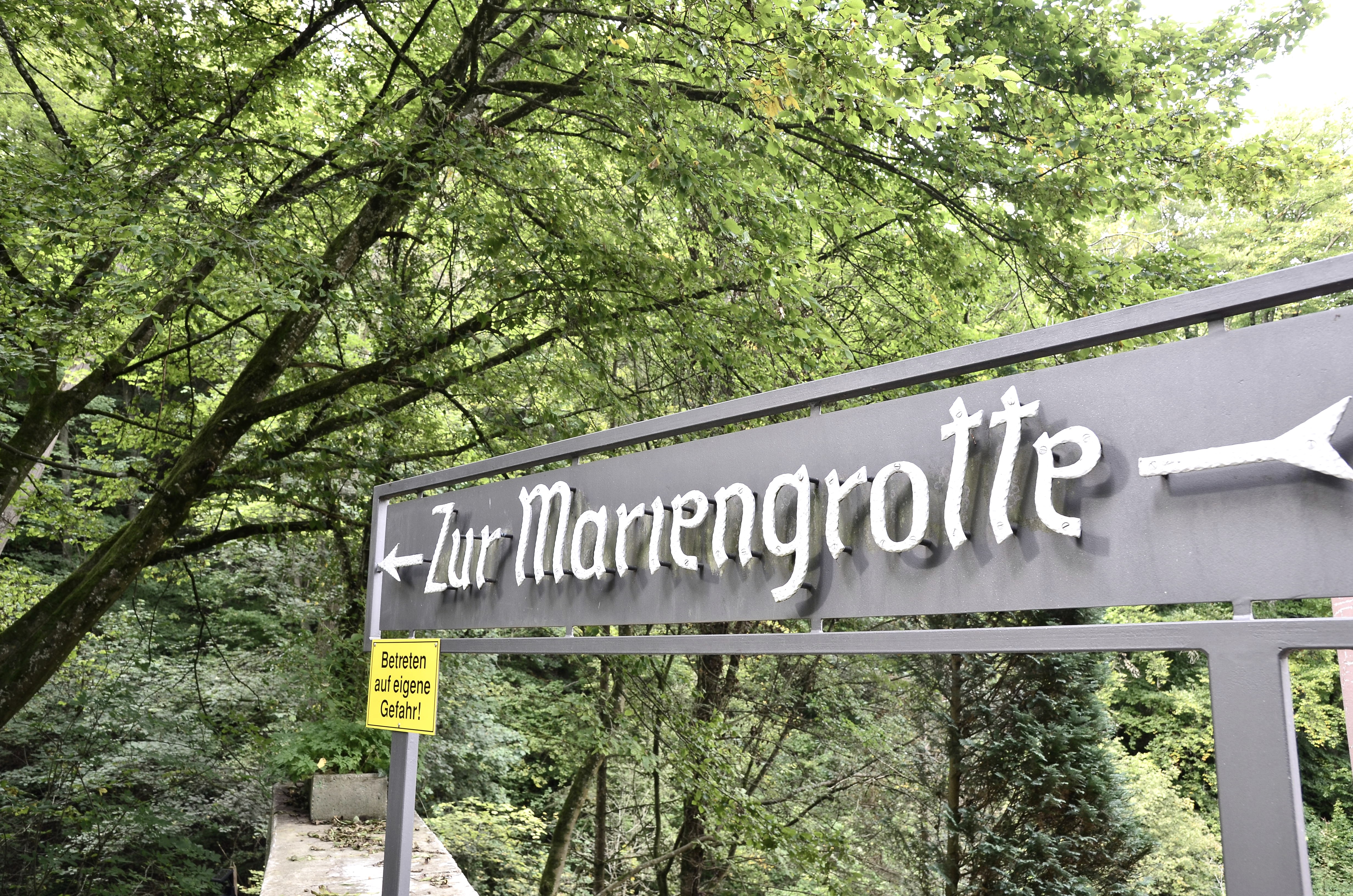 An der Albachstraße, ca. drei Kilometer östlich von der Stadt Bitburg entfernt, liegt verborgen in einer Schlucht die Mariengrotte. Ein großes Schild zeigt den Weg entlang der kurzweiligen Waldstrecke. Es geht über Treppen aus Naturstein (man sollte vorsichtig gehen, die Treppen könnten rutschig sein), vorbei an Moosflächen, Waldsauerklee, großgewachsenen Bäumen und Farn. Eine Kulisse, die einen mystischen Zauber besitzt. Nach dem kurzen Weg sieht man schnell einen Wasserfall und schon eröffnet sich der Blick auf die in Stein eingebettete Mariengrotte. Ringsherum an der Steinwand sind zahlreiche Dankestafeln angebracht. In der Mauer befindet sich eine kleine Wasserquelle. Man sagt, dass das Wasser von Besuchern als Weihwasser benutzt wird.