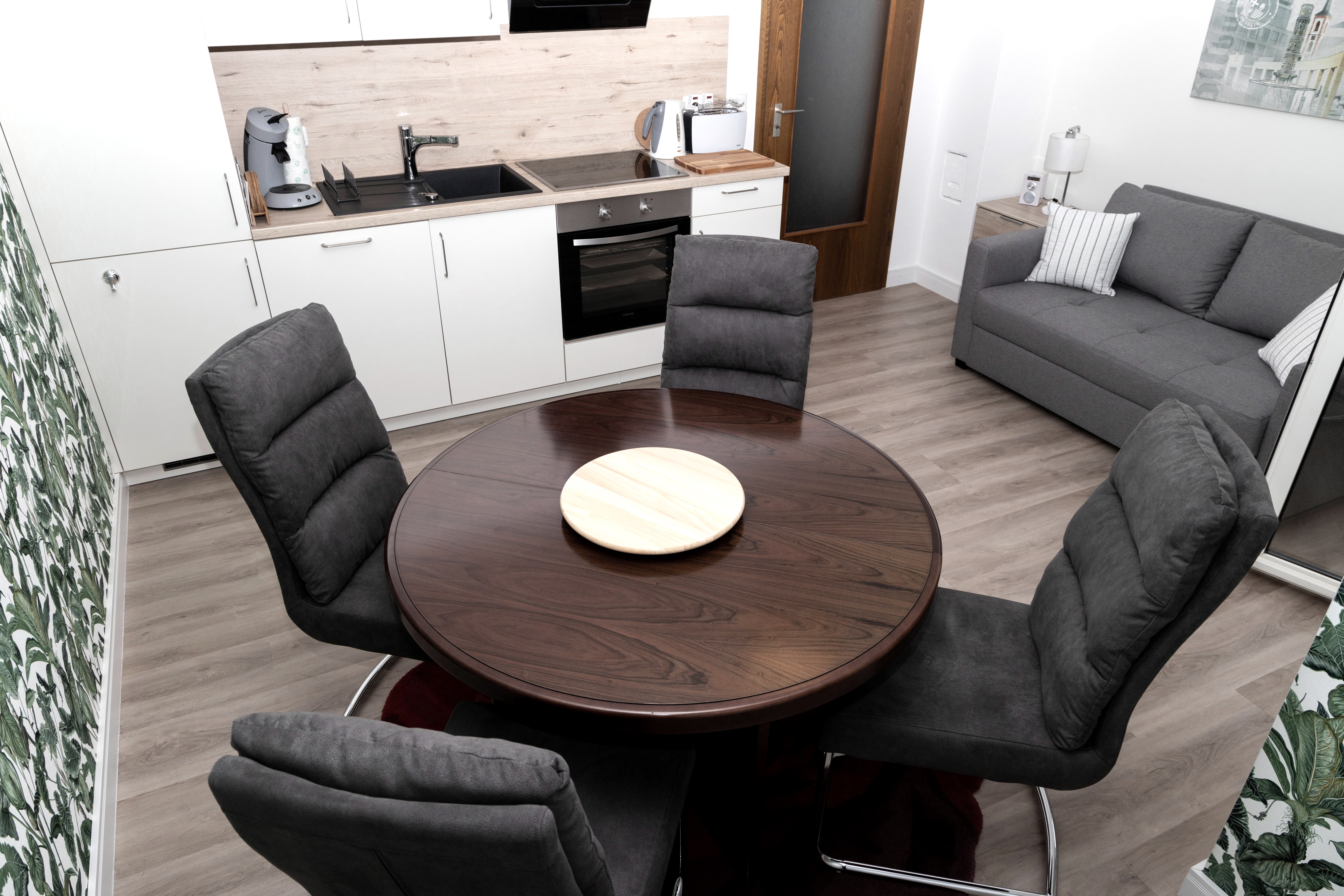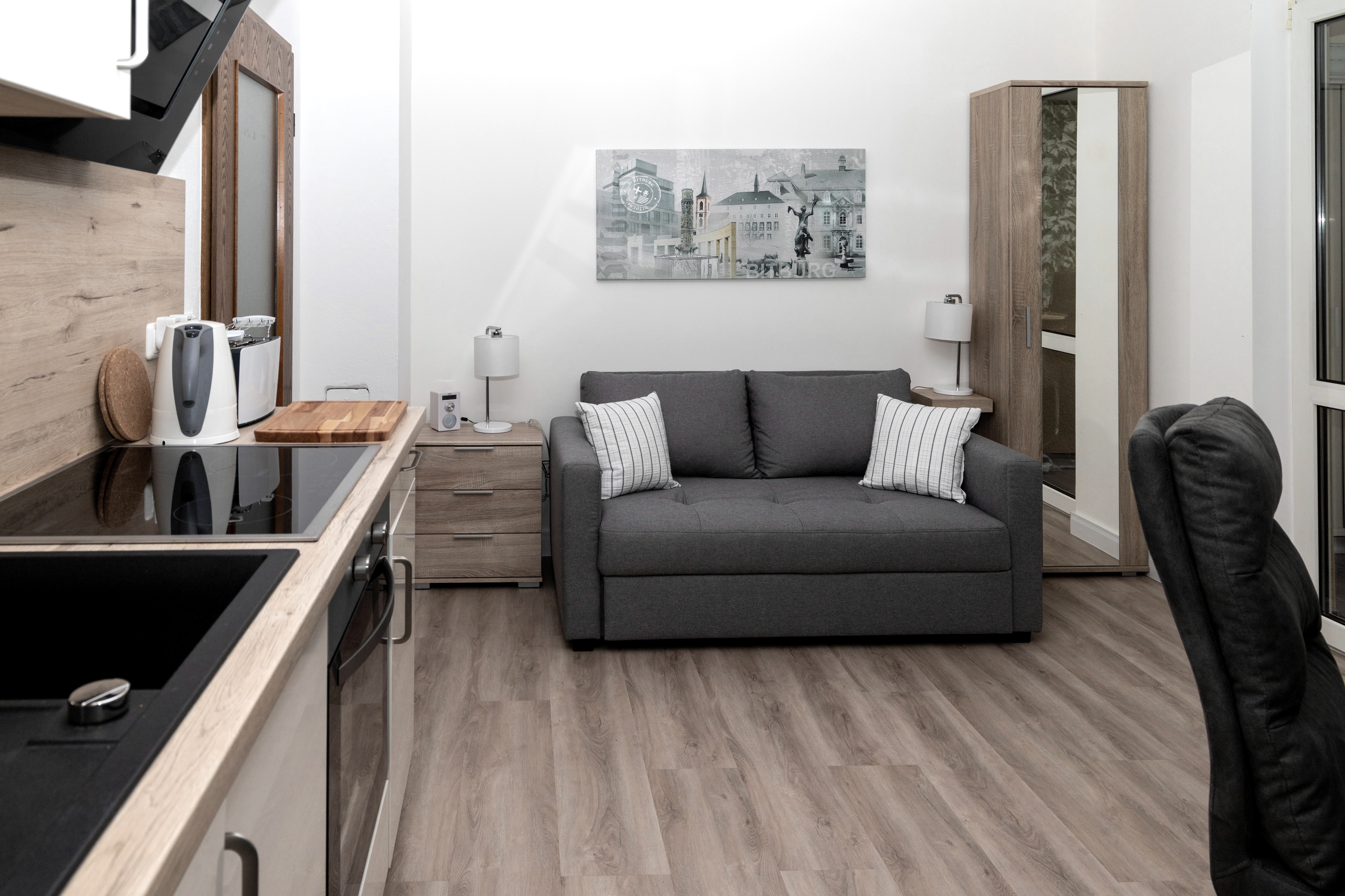 Brand new, great studio and apartment furnished with love. The location is in the absolute city center. More central is no longer possible, right on the pedestrian zone on the first floor (no elevator). The facility is completely new (renovation ended in January 2020). The studio is furnished in a youthful modern style, the apartment has a modern, elegant touch. To your studio or apartment you will receive a free parking in the center of Bitburg. Pets are not allowed!