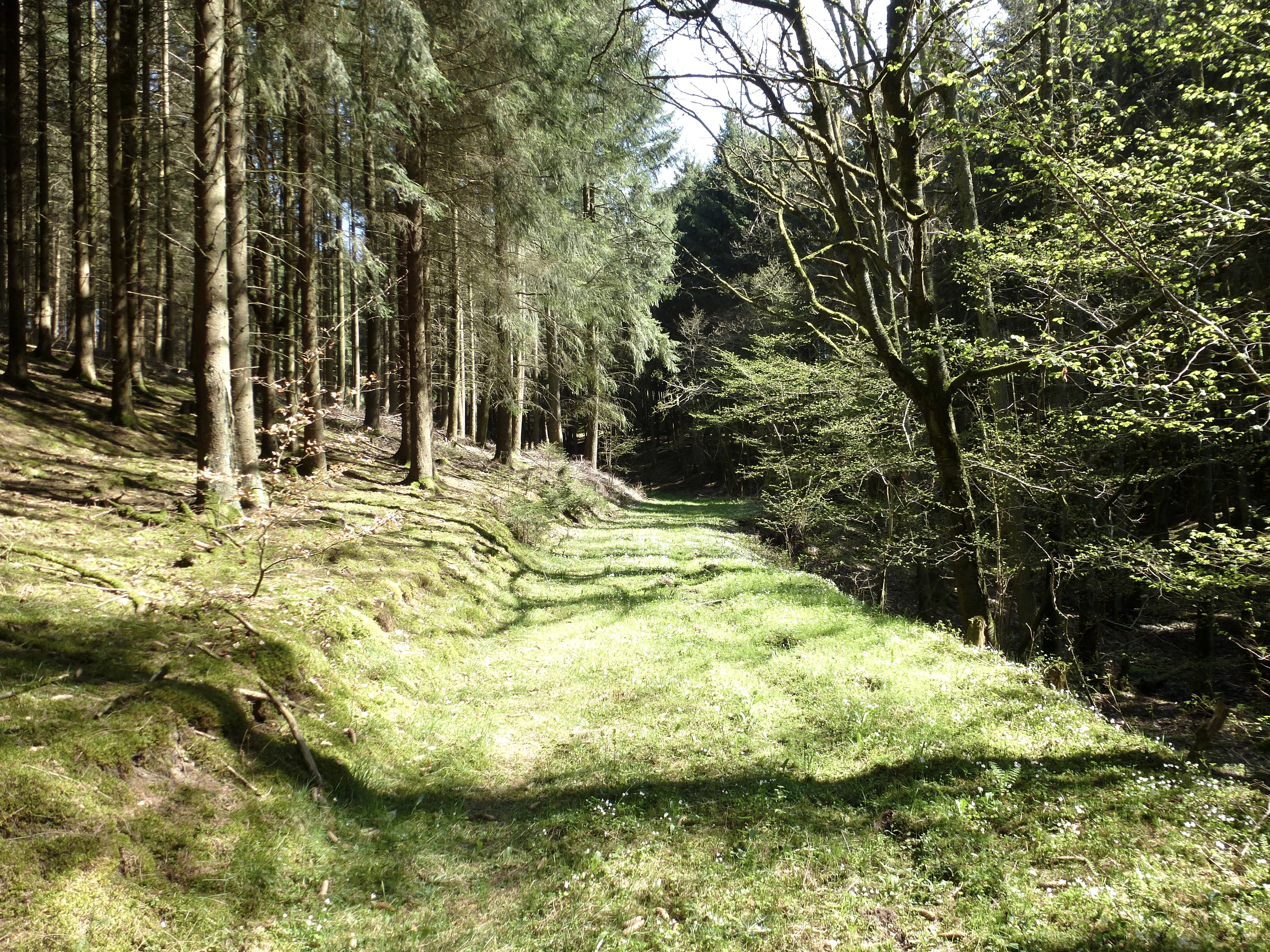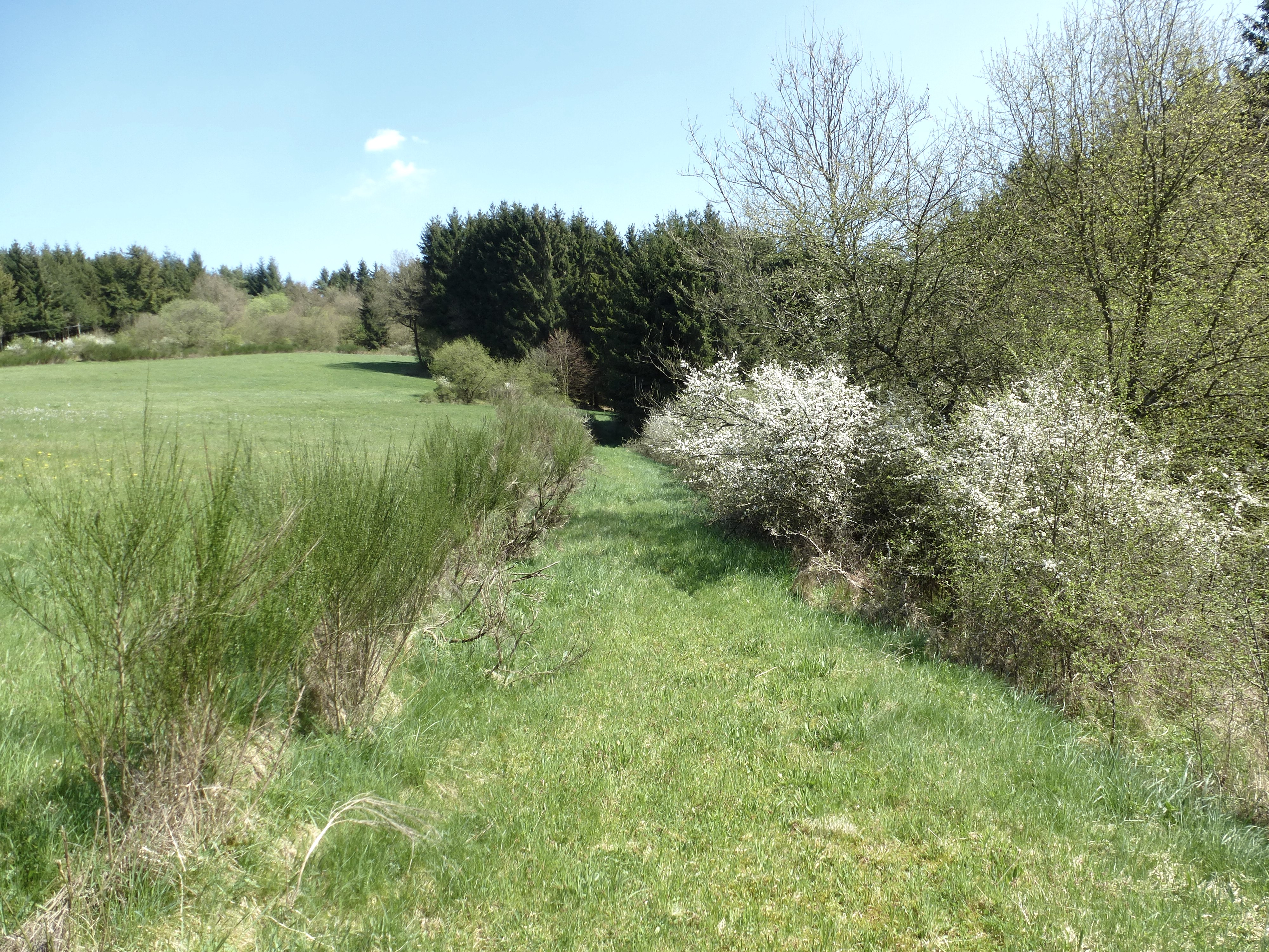 The route leads upwards from Densborn and we soon find ourselves above the Ansbach in a lovely valley; we continue to the Ansbach and along it, then after a first dream panorama, we continue through the forest, which again and again opens up the view of meadow landscapes and the Kyll valley.