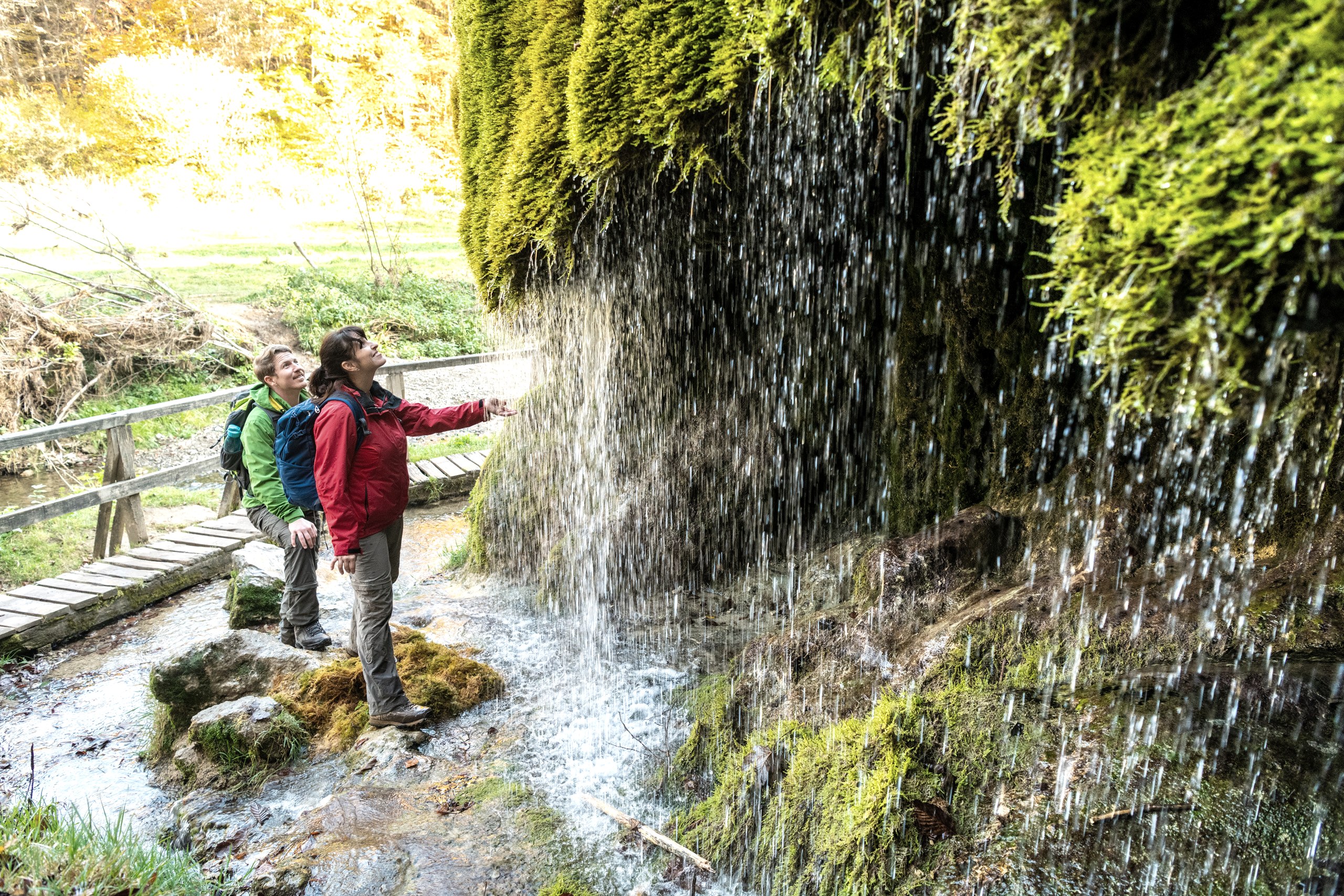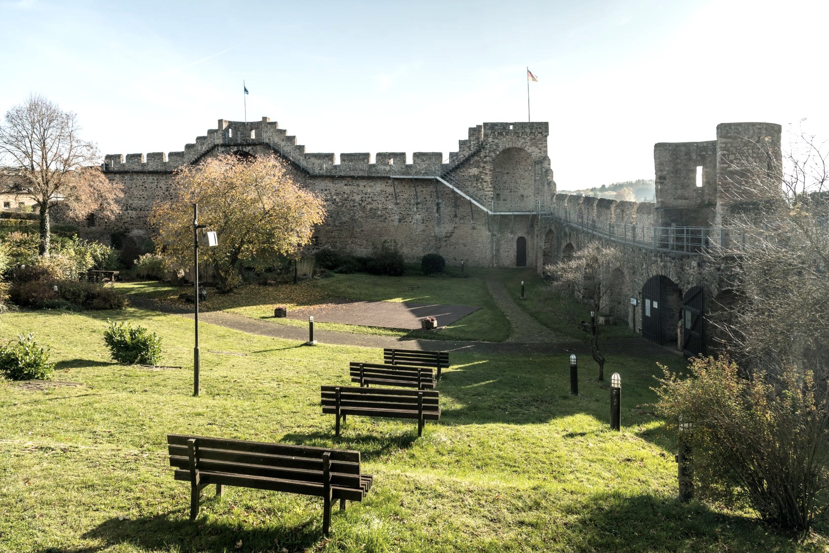 The halfway point on your hiking tour is marked by a special natural monument: The Dreimühlen waterfall near Nohn. It took nature quite a long time to create the waterfall and it is still doing so. Calcium is deposited here day by day, persistently creating wonderful formations - protruding an additional ten centimetres into the valley each year. You do the same as nature does and take your time here. Close your eyes and listen to the melodies of the enduring waters, feel the soft moss and refresh yourself with a foot bath in the glittering waters. After this picturesque relaxation break, the Eifelsteig takes you on past the monastery of Niederehe to the steadfast Kerpen Castle, which is proudly enthroned above the village (privately owned, can be viewed from the outside).