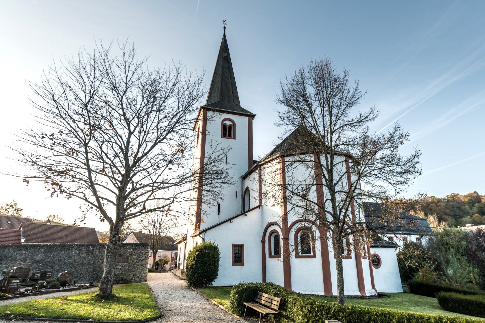 Today, you start your hike at Mirbach’s impressive Chapel of the Redeemer - have another quick look and take in the golden mosaic before you head off. Soon you are following narrow forest paths and routes along fields and meadows. The open view already gives you some initial views of the volcanic landscape of the Eifel.