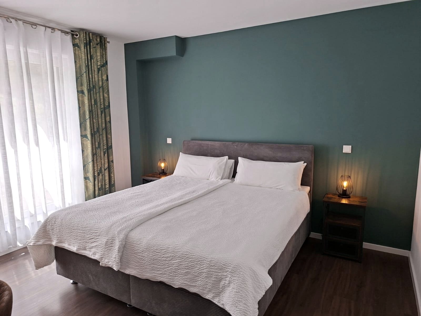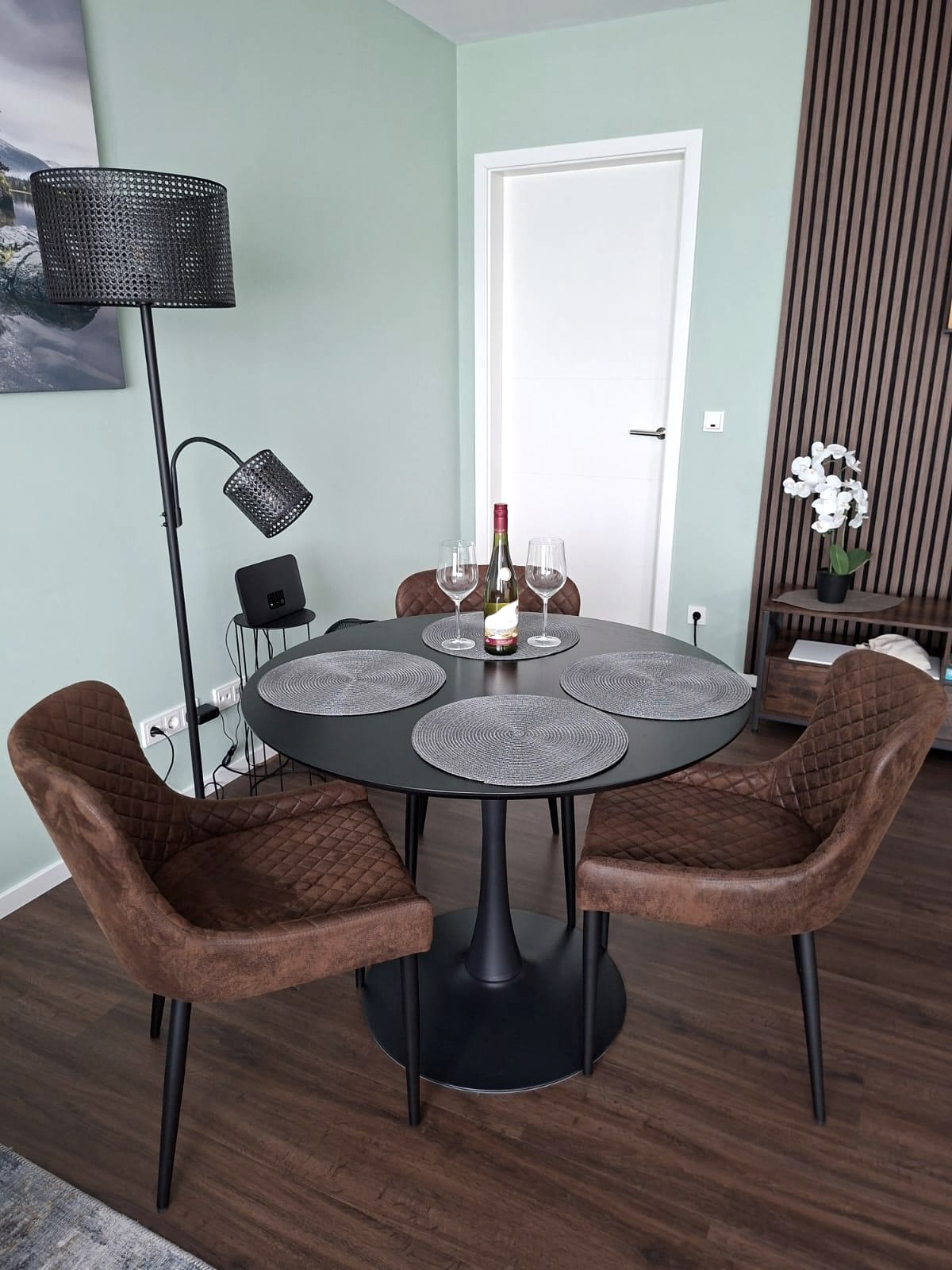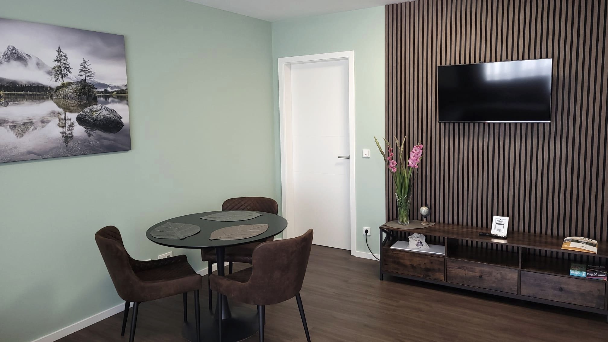 The heart of the apartment ist the cozy living room, furnished with a comfortable sofa and a flat- screen TV. Here, you can relax, read a good book,or enjoy a movie night. The open living area creates a warm atmosphere that invites you to linger.