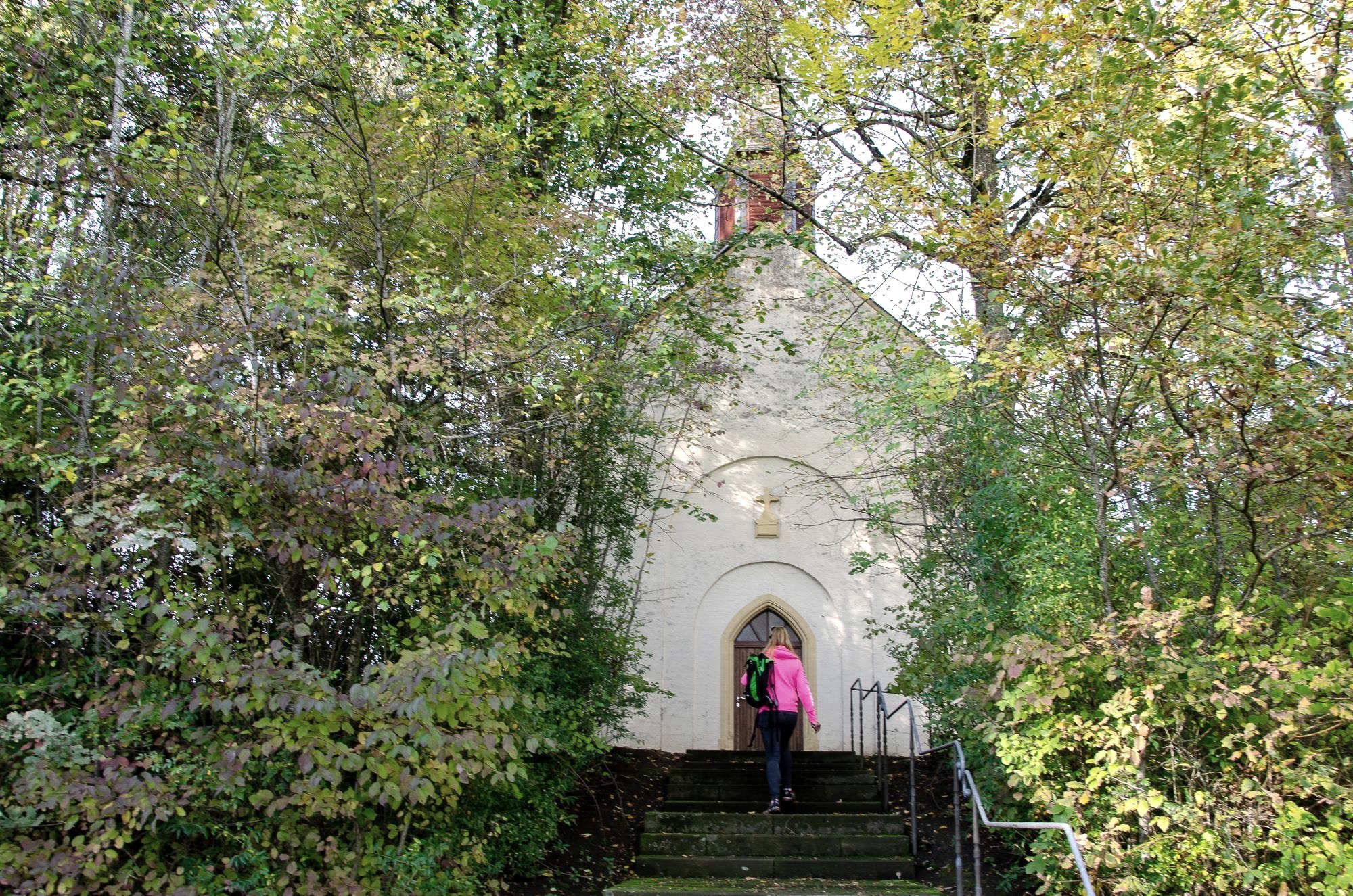 The Chapel of the Sorrowful Mother of God (municipality of Dockendorf) is located on the circular hiking trail no. 89 of the Southern Eifel Nature Park. The two-axle, three-sided closing hall building was erected in 1870 at the edge of the forest west above the village (source kulturdb.de).