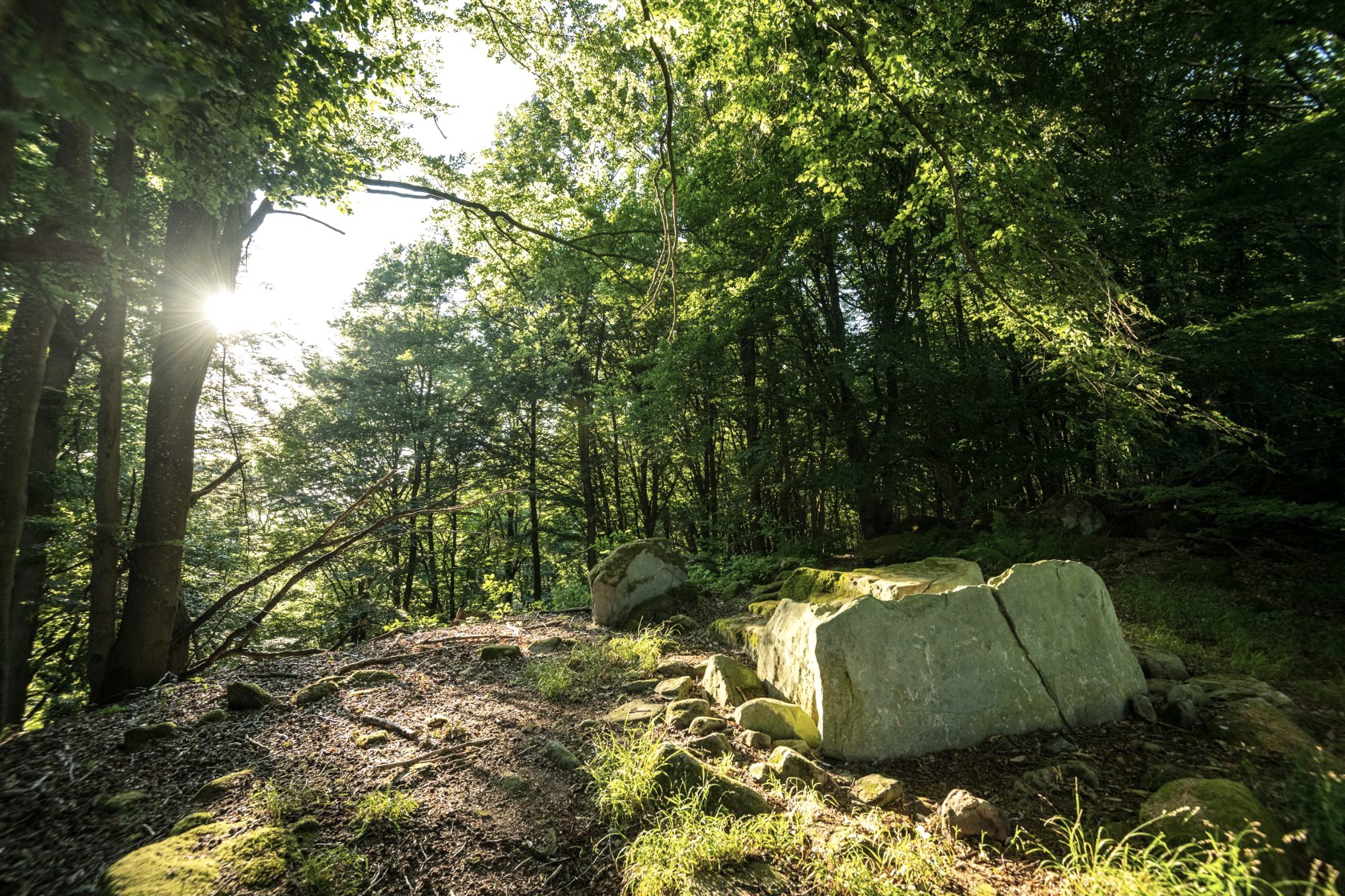 Perhaps you too will come a little closer to the miracle of creation on this beautiful circular route, and you will certainly be enchanted by the landscapes you pass through on this tour. They span between picturesque craggy rock massifs and the typical South Eifel orchards, which create an enchanting picture during the fruit blossom in spring. Along with the hop fields, they bear witness to the mild climate that prevails here. Apparently, people felt at home here thousands of years ago, as evidenced by several prehistoric and early historic monuments that you will encounter along the way, including the Langenstein menhir, Roman burial grounds, the Viking castle and an ancient stone box tomb.