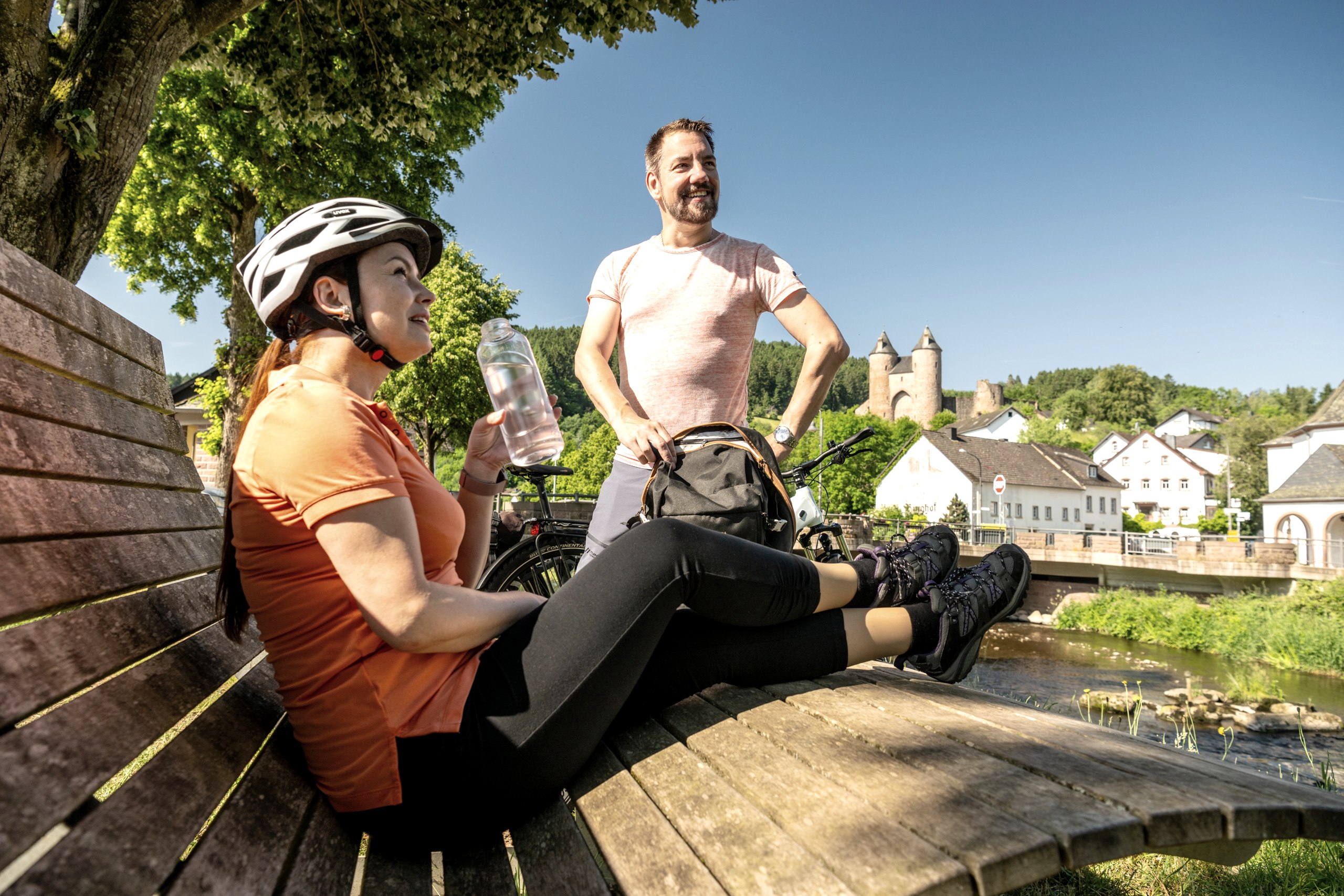 The Kyll Valley Cycle Route extends the whole length of the Eifel region from Dahlem to Trier, the oldest town in Germany. Because it runs parallel to the Cologne-Trier railway line, there is an easy way for you to return to where you started. The long-distance route passes numerous castles as it follows the twists and turns of the River Kyll through the various parts of the region. Beginning in the northern Eifel, you cycle past reservoirs, lakes and those that fit both descriptions, such as the Lake Kronenburg. It's then on through the ancient volcanic landscapes of the Vulkaneifel, followed by the meadow orchards and rugged rock formations in the southern Eifel and the countryside outside Bitburg. A real insiders' tip is the Limestone Eifel Cycle Route, which runs 20 kilometres from Hillesheim to Ahrdorf and links the Kyll Valley Cycle Route with the Ahr Valley Cycle Route.