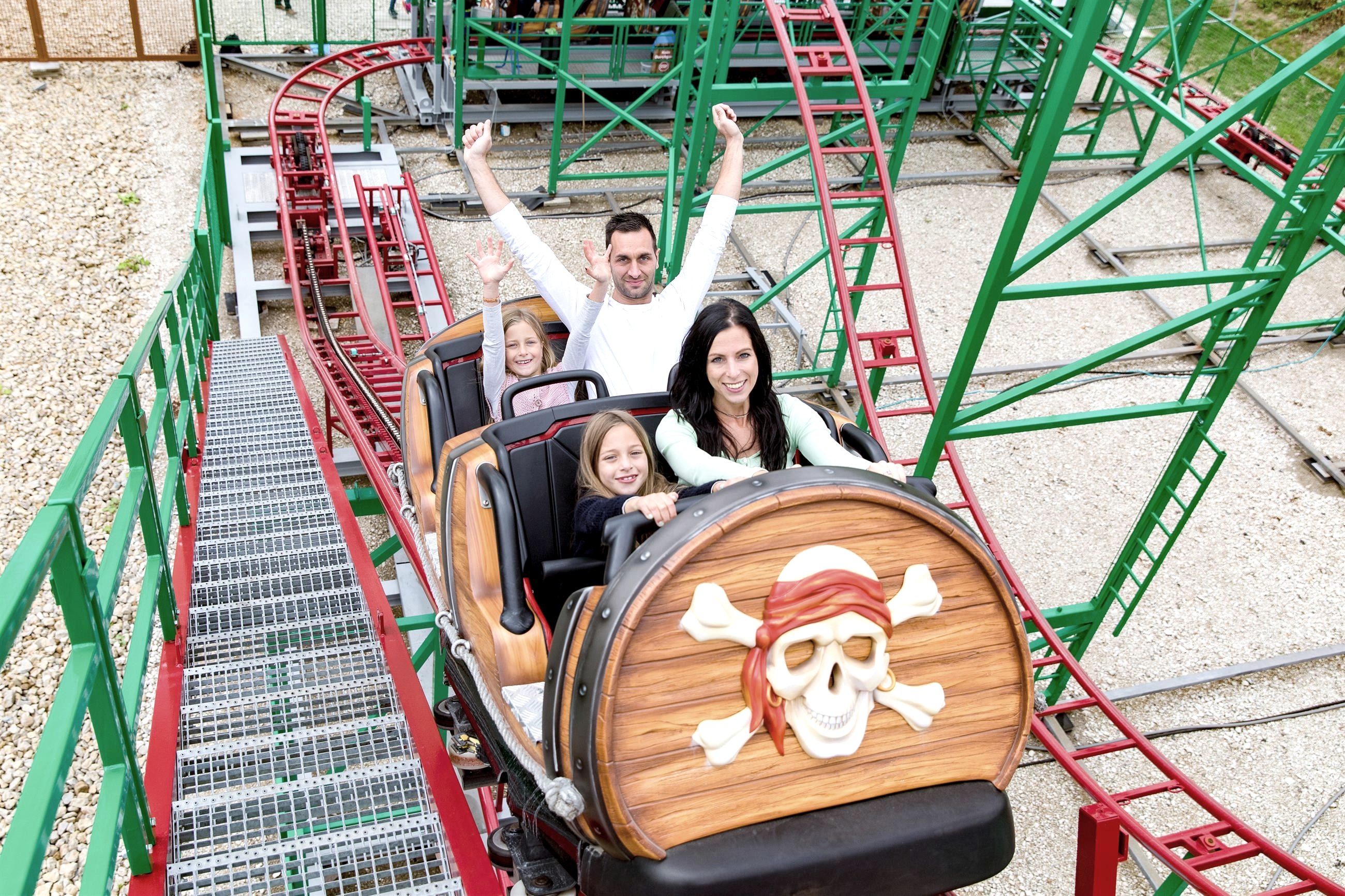 More than 60 attractions and over 200 wild animals make the Eifelpark the leisure destination for families with children, school classes and kindergarten hiking days, senior citizen excursions and eventful group trips. Ride fun for the whole family at the Eifelpark theme park On the Pirate Island wild water ride, you go on a refreshing and action-packed ride in tree-trunk boats along the 360-metre-long canal with two shots from a height of up to 14 meters. In the toboggans of the "Eifel-Coaster" summer toboggan run, you glide down into the valley at speeds of up to 40 km/h. The almost 1000 meter long track uses the topography of the Eifelpark and is perfectly integrated into the beautiful park landscape typical of the southern Eifel.