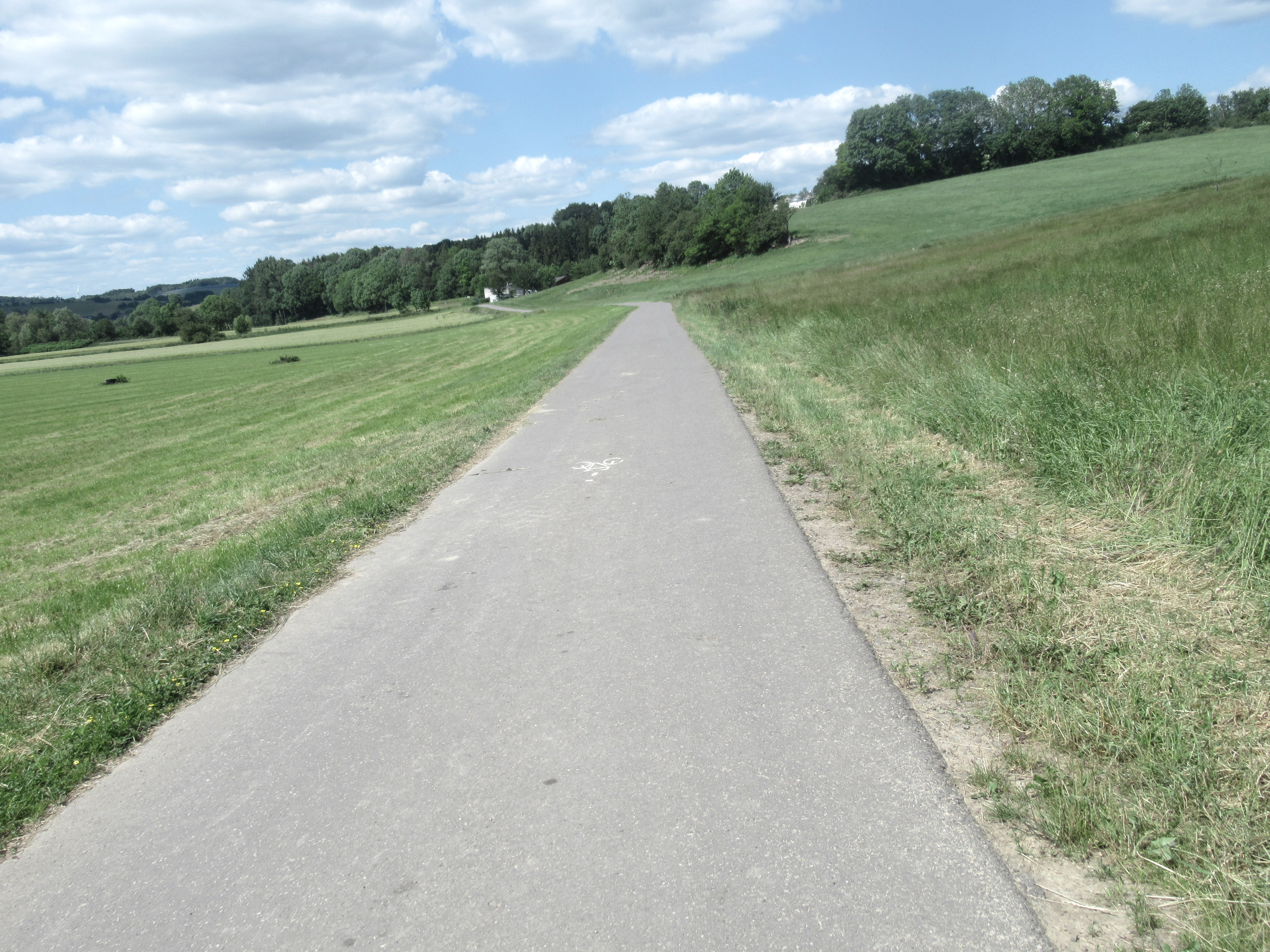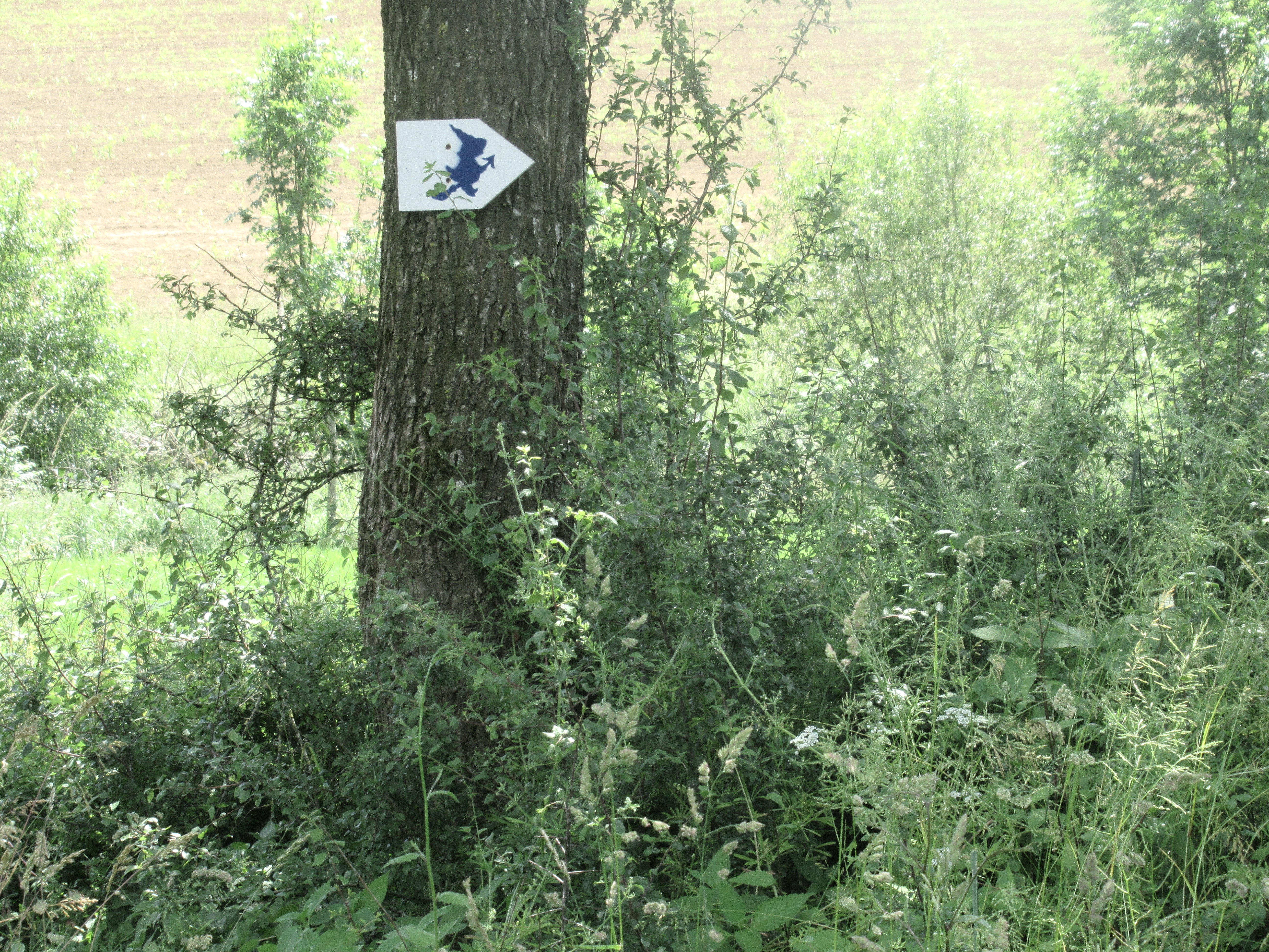 Start at the community centre - Lamm - Rittersdorferstraße - Wiesenweg - left tarred farm track towards the valley until the sewage treatment plant - left cycle track towards Rittersdorf until the next junction on the left - follow the tarred track until after a left and then a right bend, before the next settlement field track right uphill - follow this field track until the district road (there on the right in approx. 100 m cross no. 12). 12) - cross the district road - follow the road "in der Dell" until it bends to the left - take the dirt road to the right until you reach a tarred farm road (crossroads no. 11) - follow the farm road until you reach a hilltop - turn left towards the windbreak hedge until you reach crossroads no. 10 - continue straight ahead until you reach the rotating beacon - turn left onto the tarred farm road towards Nattenheim - turn right at the main road until you reach the next junction (crossroads no. 9 on the right at the chestnut tree) - turn left towards the sports field to the community hall.