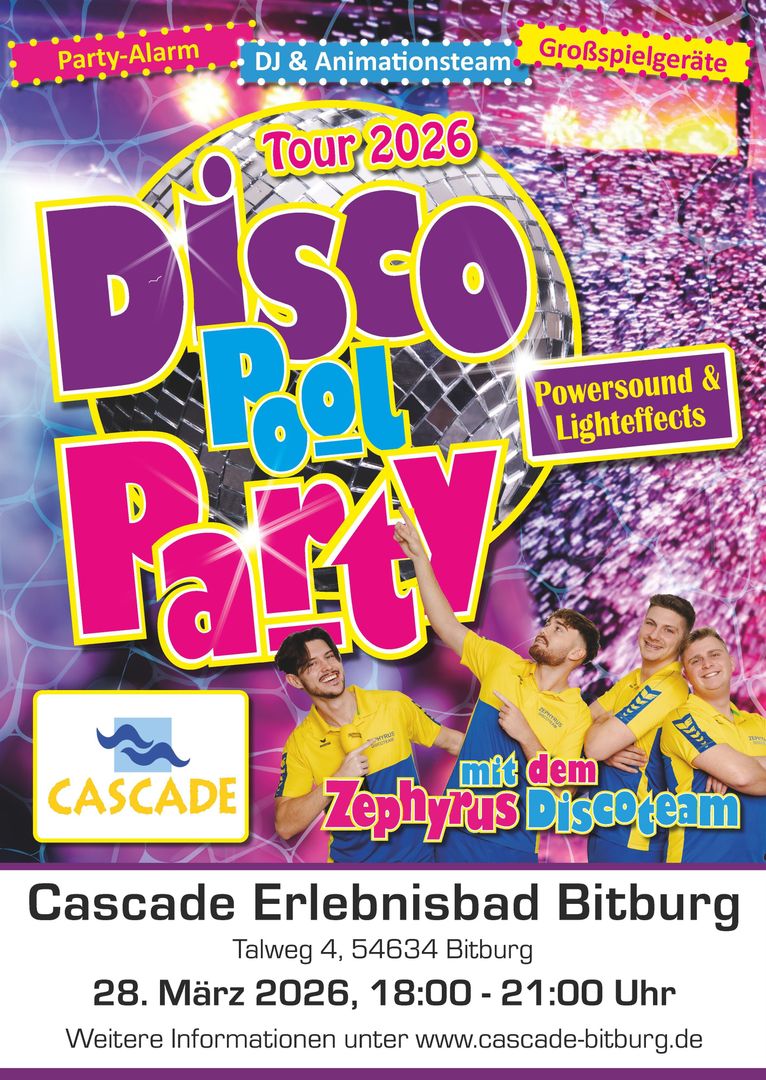 Germany's number one pool party team, the ZEPHYRUS disco team, is making a stop at the Cascade adventure pool.