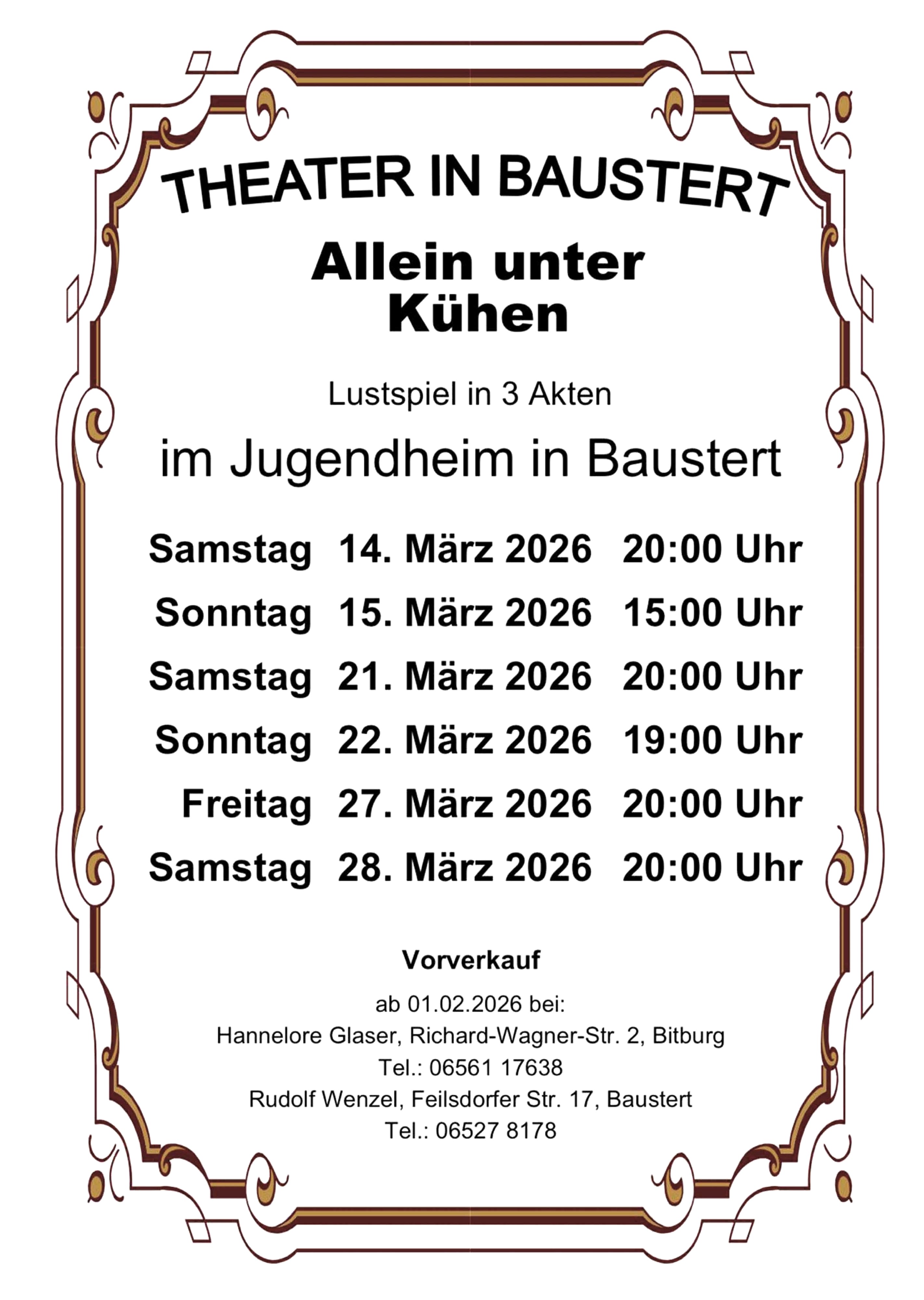 The comedy in three acts by Cornelia Willinger "Alone Among Cows" will be performed.