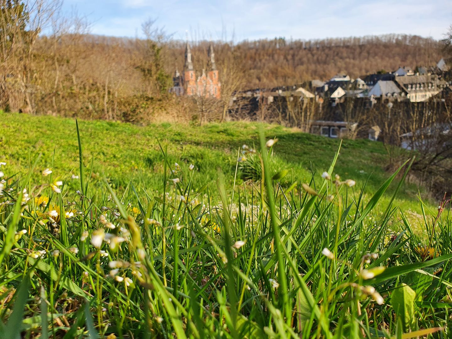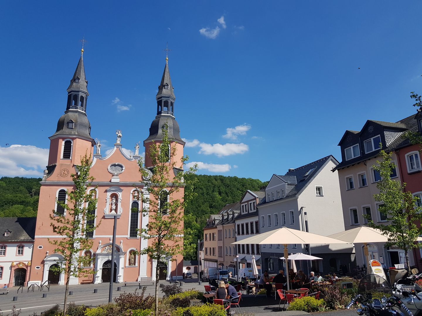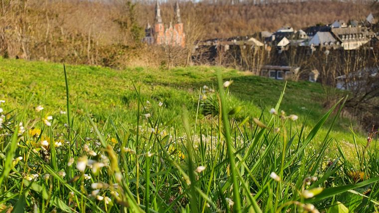 A very special view of the St. Salvator Basilica can be enjoyed from the Calvary with its basalt cross, which stands on the edge of a huge blasting funnel. The explosion of a former Westwall bunker filled with explosives on July 15, 1949, shortly after the end of the war, once again severely destroyed the town.