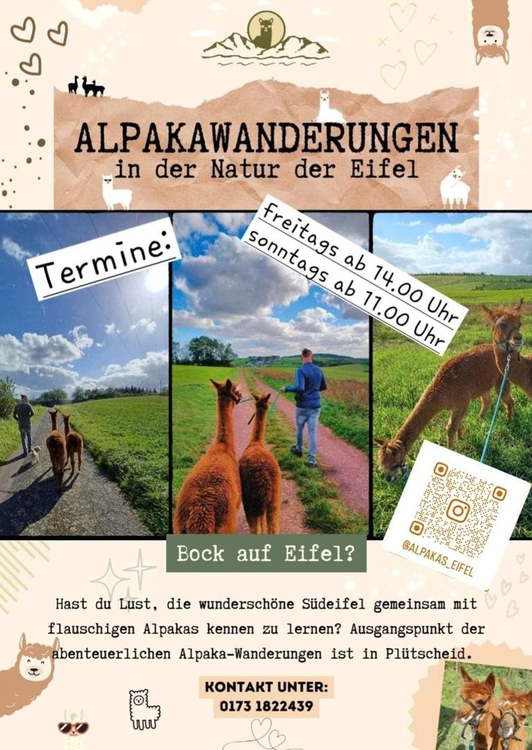 Hast du Lust, die wunderschöne Südeifel gemeinsam mit flauschigen Alpakas kennen zu lernen?