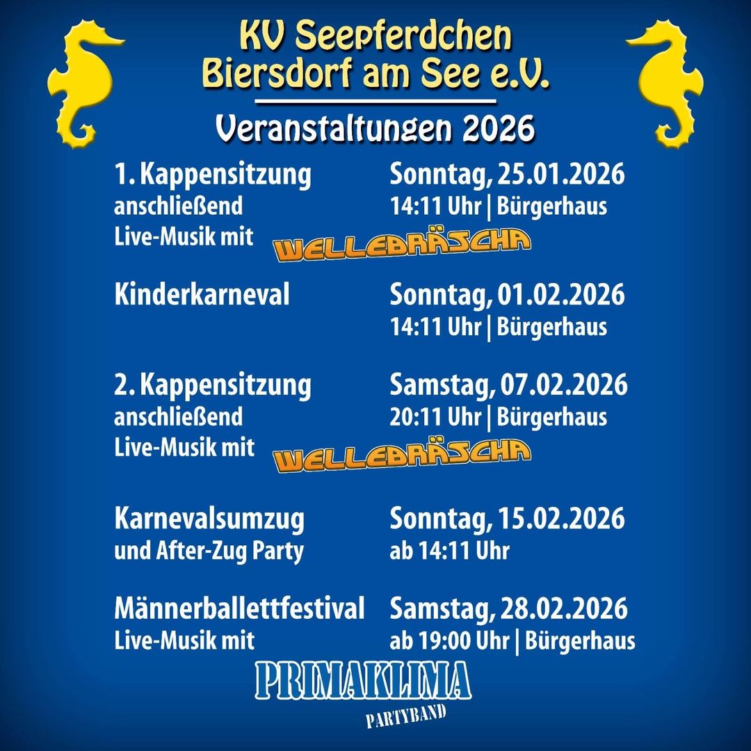 Wenn bei den meisten der Karneval schon vorbei ist, starten die Seepferdchen nochmal richtig durch. Bis zu 20 Gruppen aus nah und fern zeigen ihr Können. Da tobt der Saal!