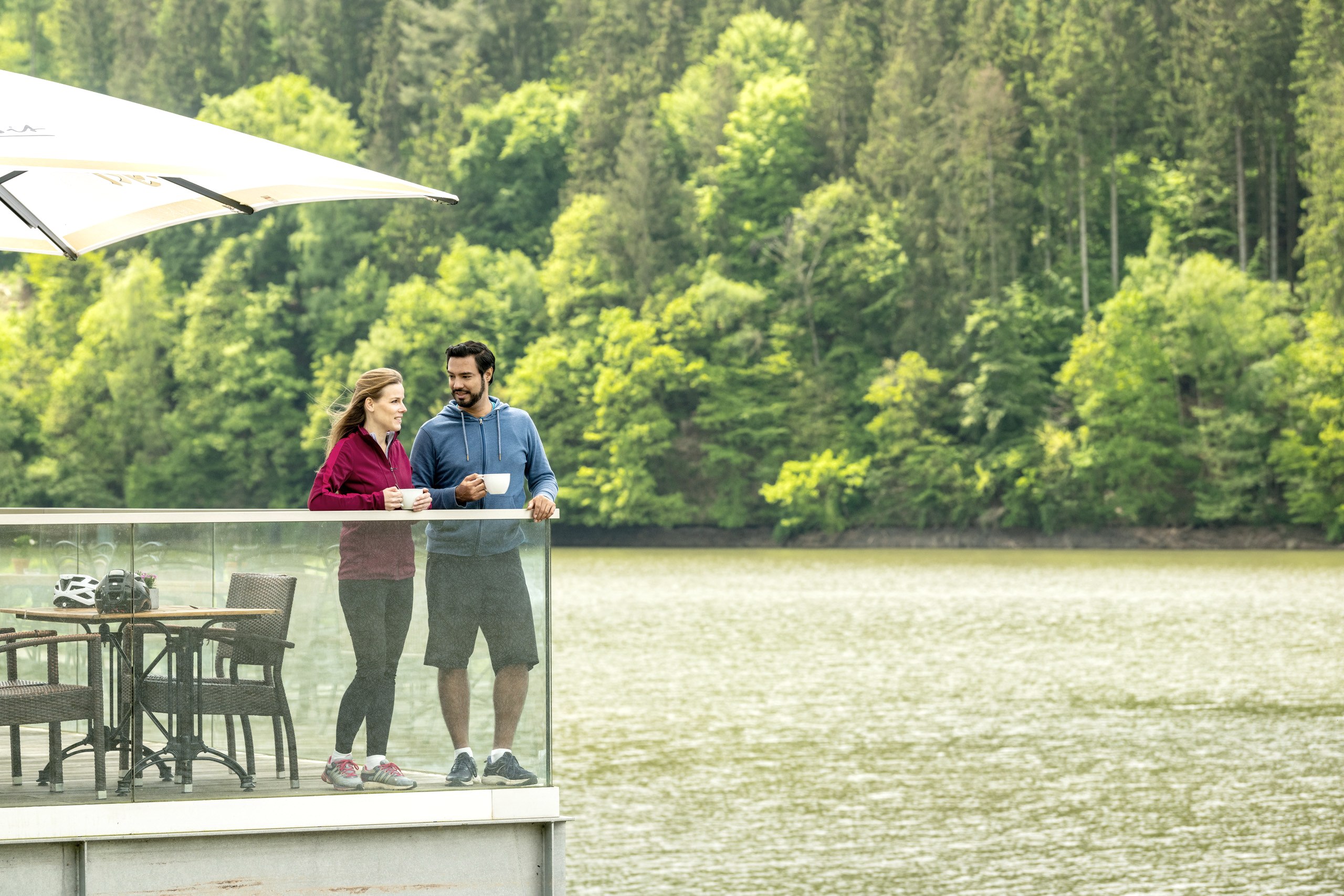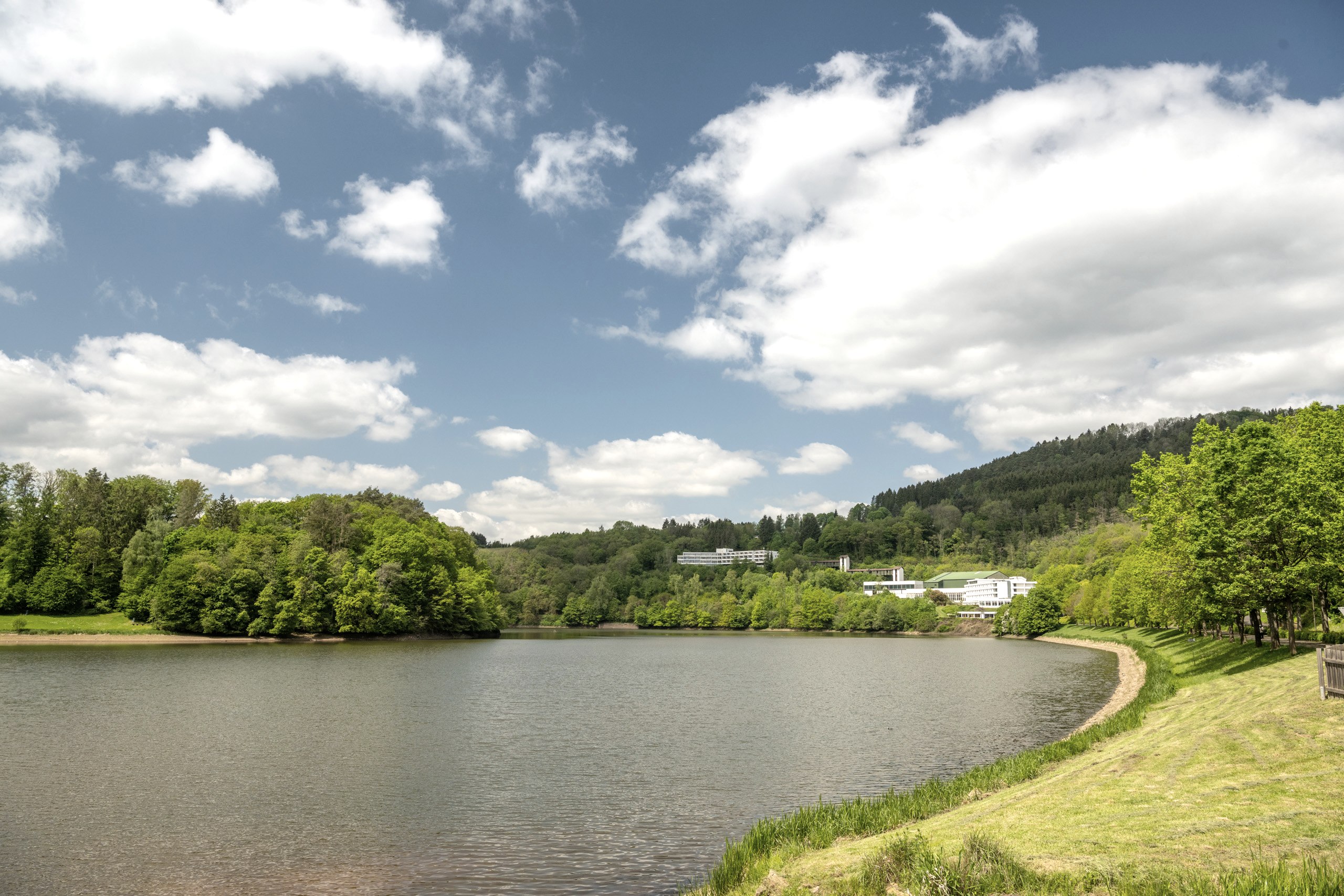 Le lac de barrage près de Biersdorf, situé dans la pittoresque vallée de la Prüm, est le cœur de l'offre touristique du sud de l'Eifel. Les visiteurs peuvent profiter d'agréables promenades le long des quelque cinq kilomètres de la promenade au bord du lac. Une multitude d'auberges, de restaurants et de cafés se trouvent à proximité immédiate et invitent à la détente.