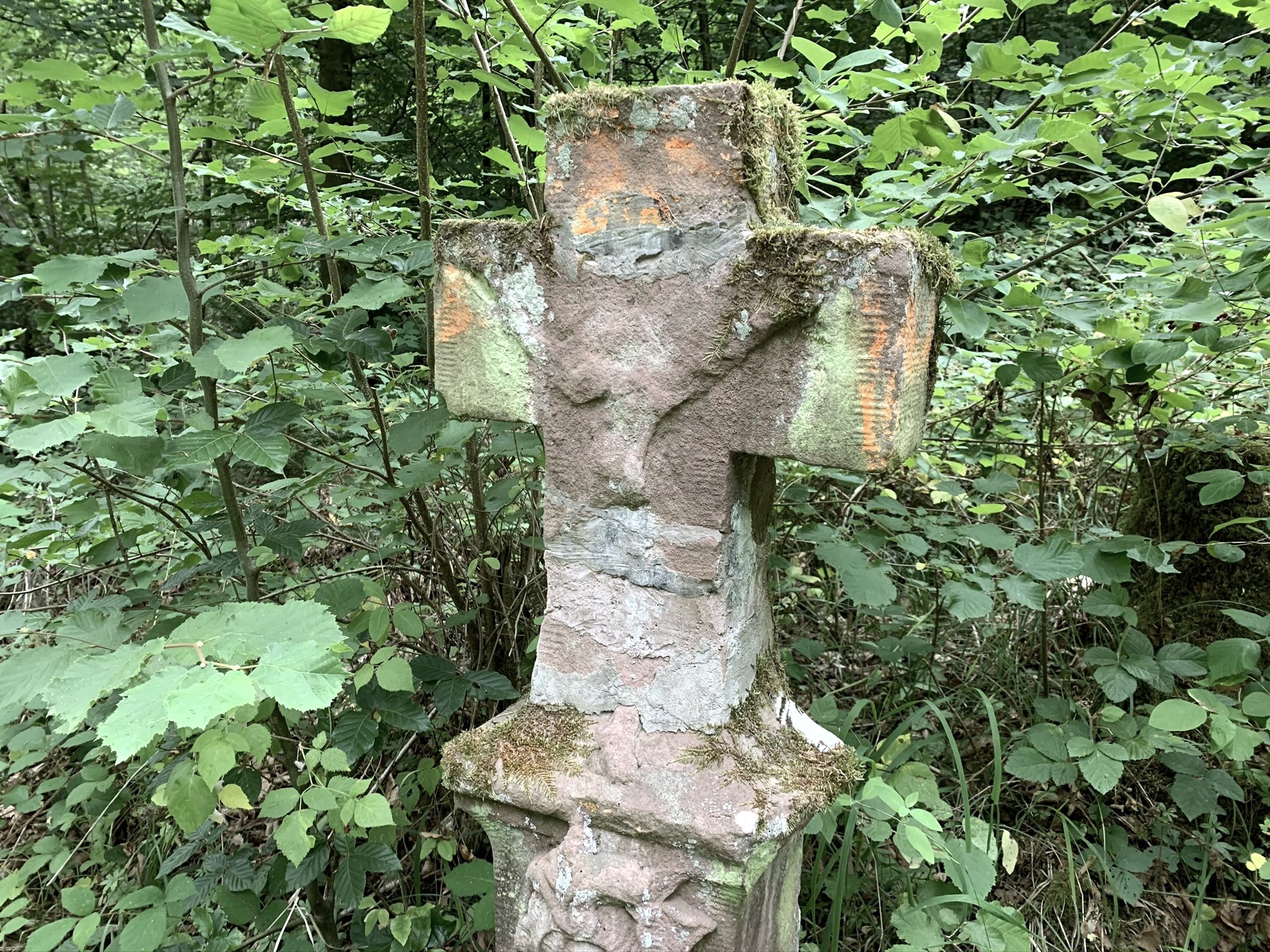 Croix commémorative au Pfalzerbach : cette croix rappelle le destin tragique de Mathias München, qui fut écrasé par un tronc d'arbre en 1778 alors qu'il abattait un arbre.