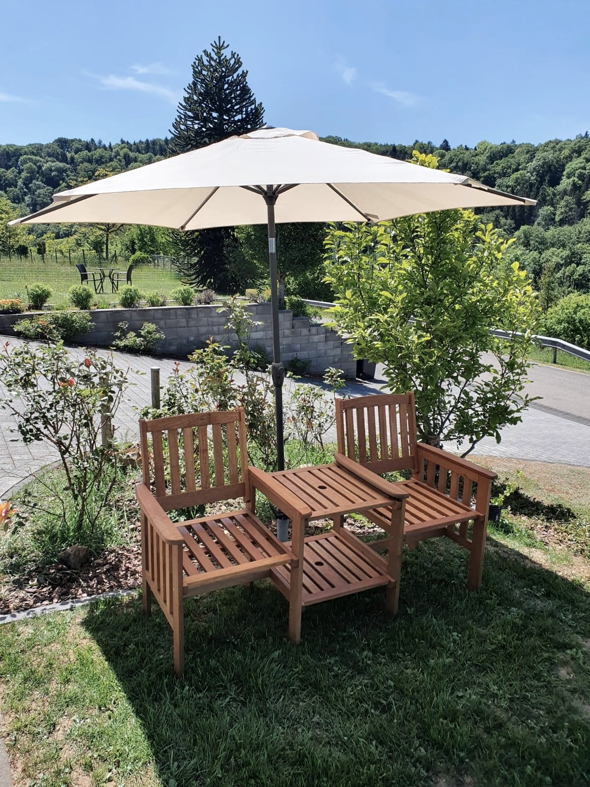 Une place assise agréable est disponible non loin de l'entrée.