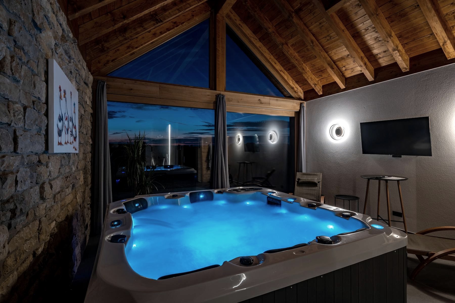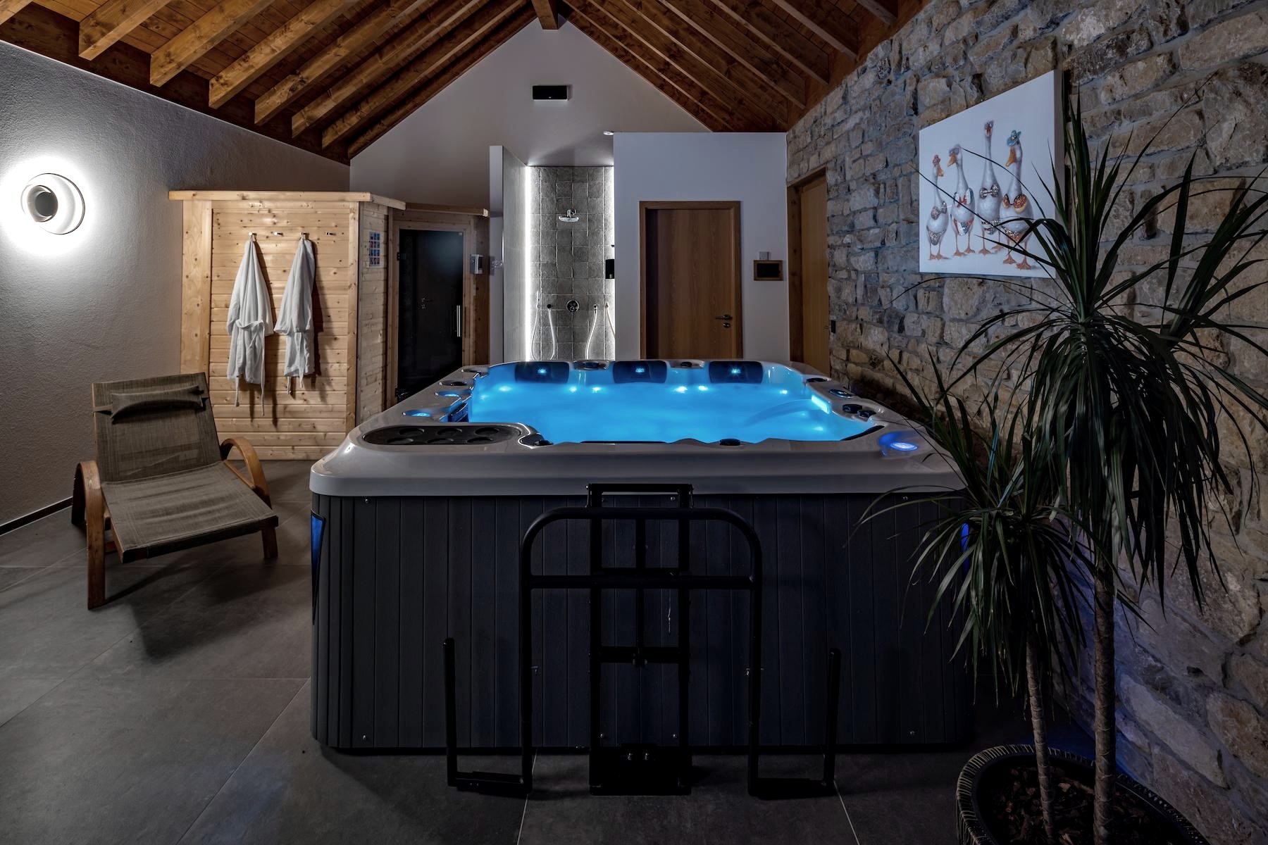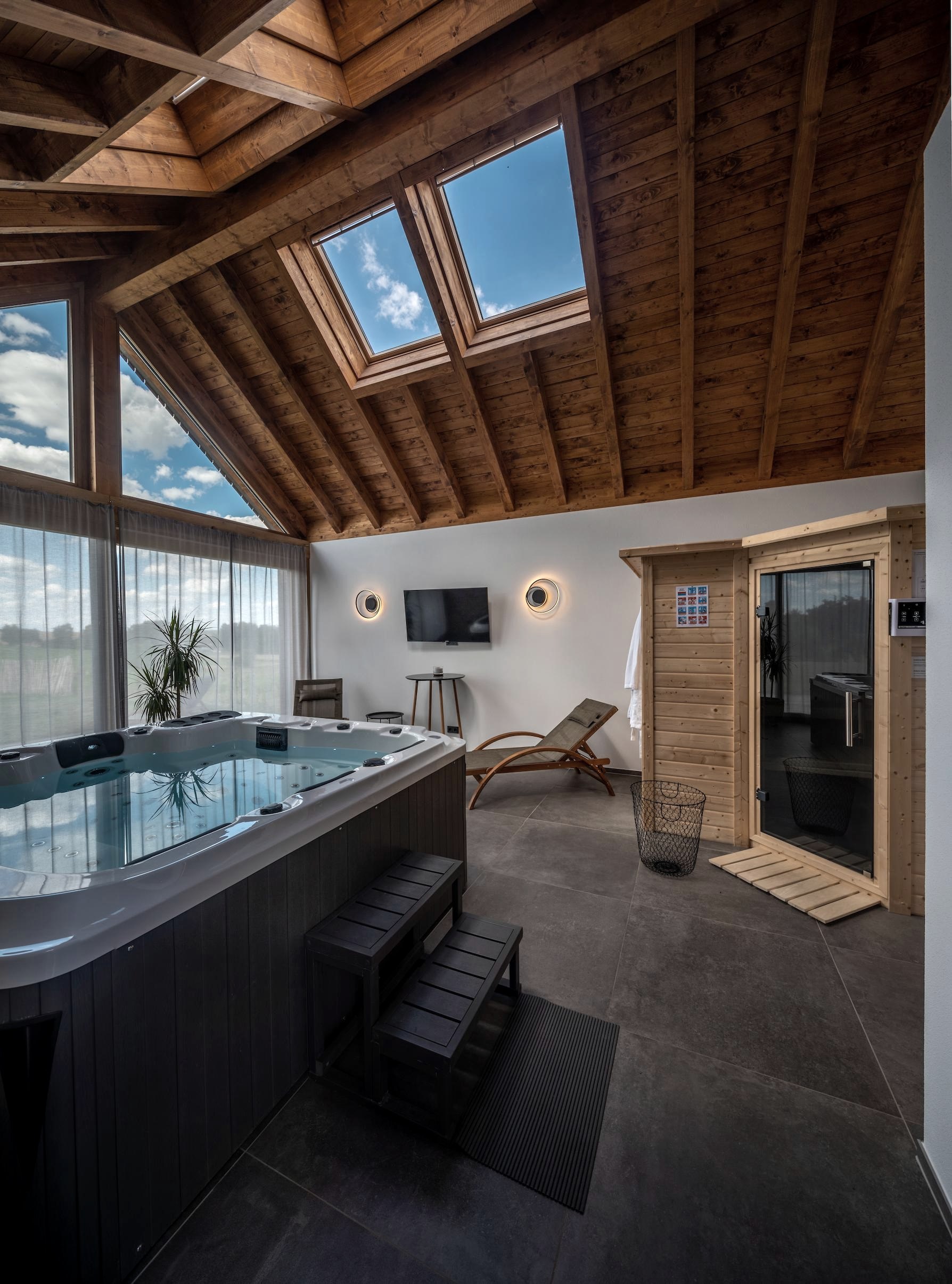 Le point fort est le grand espace bien-être séparé avec jacuzzi et sauna.