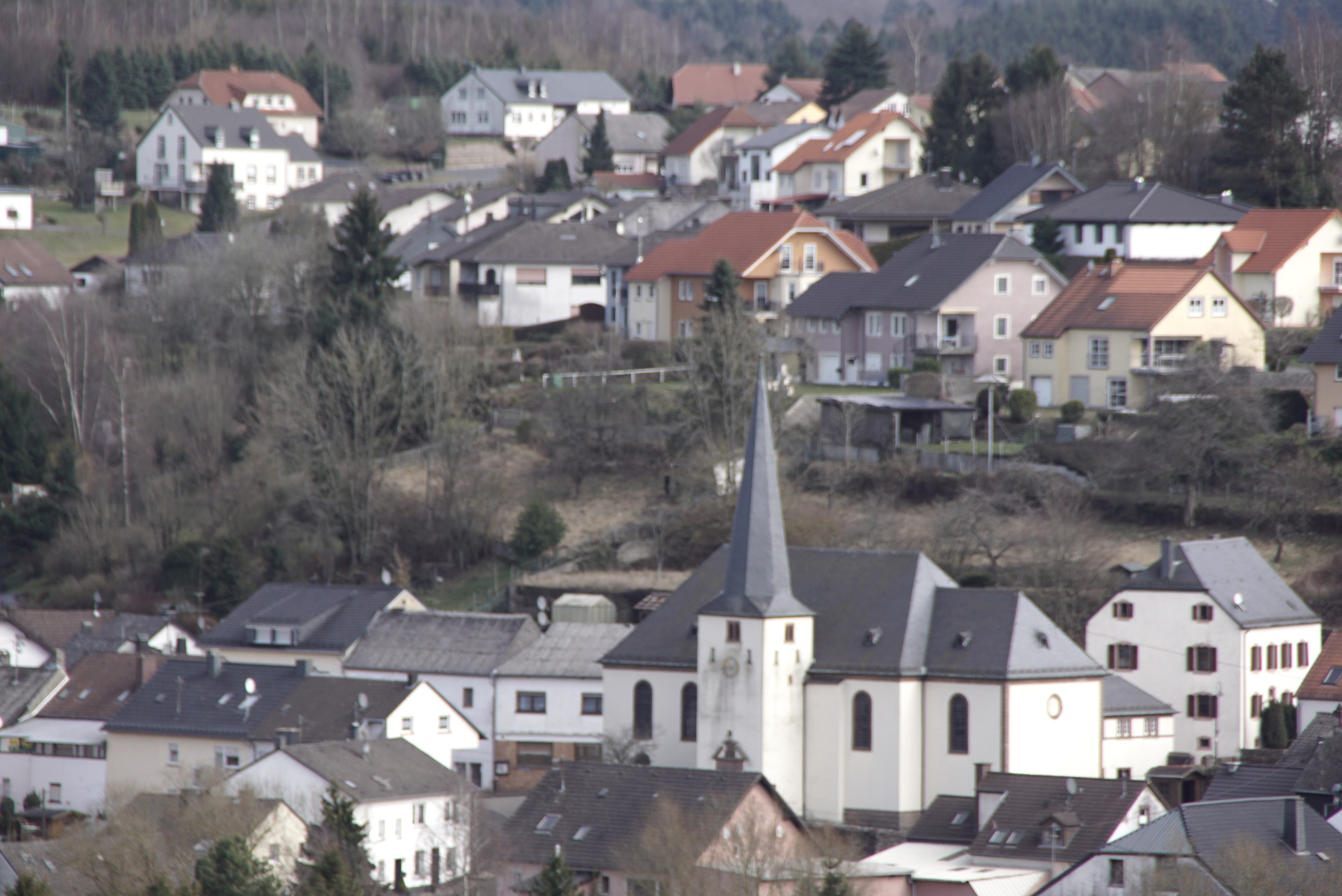 Descendre la Densborner Str., puis tout droit au croisement dans la Kyllburger Strasse, continuer à la suivre, passer devant la chapelle à droite jusqu'à la sortie du village, continuer sur la K 82, après env. 300 m tourner à droite dans le chemin d'exploitation ( banc de repos + croix de pèlerinage ) et suivre ce chemin en montée, à la hauteur ( banc de repos ) tourner à droite, longer les rangées de buissons Auf Berscheid, avant la forêt tourner à gauche, après env. 250 m, continuer à droite sur le chemin forestier, continuer en descendant un peu, dans le vallon -1- monter à droite, à la fin de la forêt à gauche traverser la K 81, suivre le chemin de terre à travers la forêt -2- jusqu'au chemin goudronné, ( croix de chemin et banc de repos) ici tourner à droite, passer le cimetière, continuer tout droit par la Bachstraße via la Densborner Str. pour revenir au point de départ.