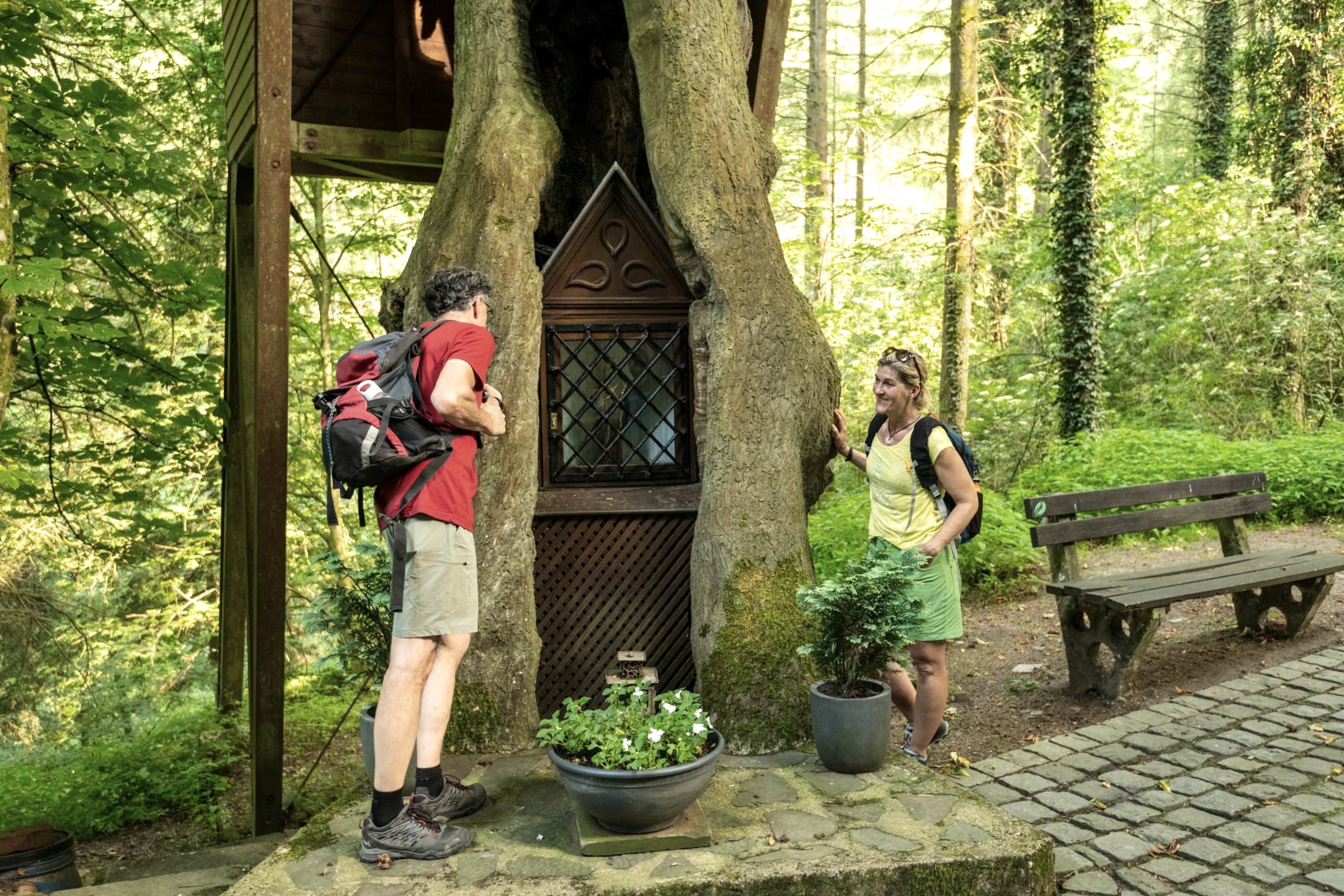 Sur le sentier du Nouveau Château, vous vivrez la "matière première" d'un récit du Moyen-Âge. En quatre actes, vous vivrez une histoire d'amour dramatique dans les lieux de détente sur votre chemin. Le chevalier Kuno von Falkenstein lui-même raconte en vers médiévaux sa cour, l'embuscade du comte de Vianden, son sauvetage miraculeux à travers un chêne creux et son mariage avec la noble demoiselle Ida dans la chapelle du château. Reposez-vous dans l'arbre creux, frissonnez face à la vindicte du puissant comte, blottissez-vous les uns contre les autres et profitez des loges.
