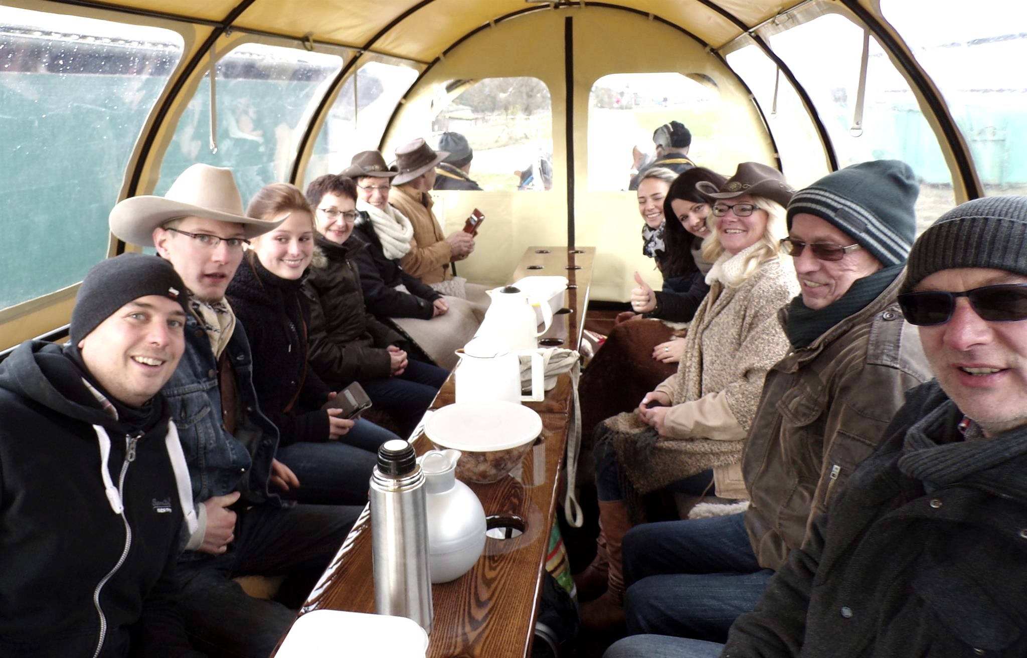 mehr lesen Le merveilleux paysage du Bitburger Land peut être particulièrement bien exploré lors d'une promenade en chariot couvert. Au total, trois voitures sont disponibles. Une promenade en calèche est possible de huit à vingt personnes au maximum. Le départ est possible depuis le River Ranch à Seffern, ou depuis un point de départ individuel dans les environs. Les promenades en calèche ne sont possibles que dans le cadre d'un service de traiteur ou d'une fête ultérieure, par exemple un barbecue au feu de camp.