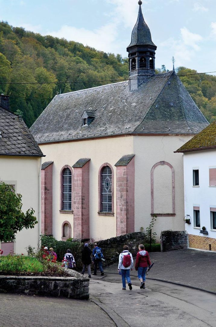 La paroisse et l'église de pèlerinage "Maria Himmelfahrt" sont situées au centre d'Auw/Kyll. C'est l'une des plus anciennes et des plus belles églises de la région du sud de l'Eifel. En 1330, l'église figure déjà dans un registre des biens de l'église. Un document des archives du diocèse de Trèves note les mots "sur l'ancienne petite église se trouvaient les armoiries françaises, trois lis et une rose", ce qui indique qu'elle a été construite à l'époque des rois francs, c'est-à-dire environ au IXe siècle.