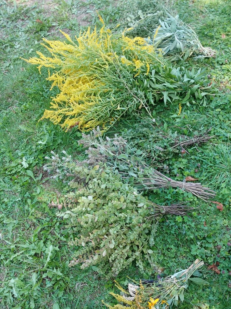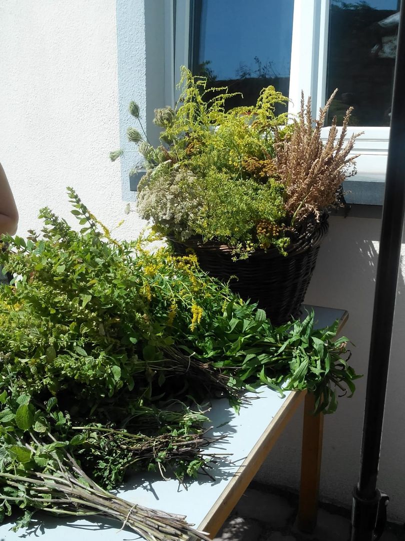 Johanniskraut, Rainfarn, Schafgarbe, Spitzwegerich, Beifuß, Wegwarte, Frauenmantel, Taubnessel, Malve, Hirtentäschel, Bibernelle, Huflattich, Brennnessel, Zinnkraut, Ringelblume, Dost, Kamille, Labkraut.