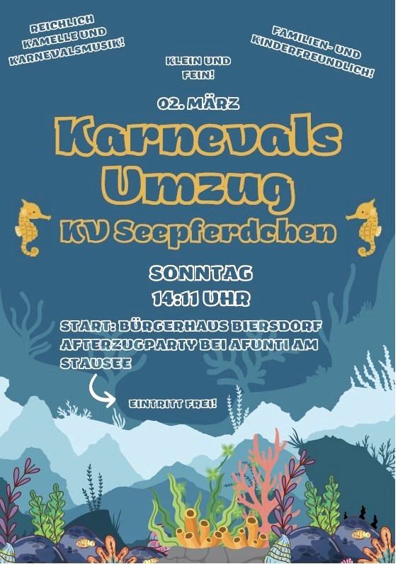 Alljährlicher Karnevalsumzug durch die Straßen von Biersdorf. "Klein aber fein" ist das Motto.