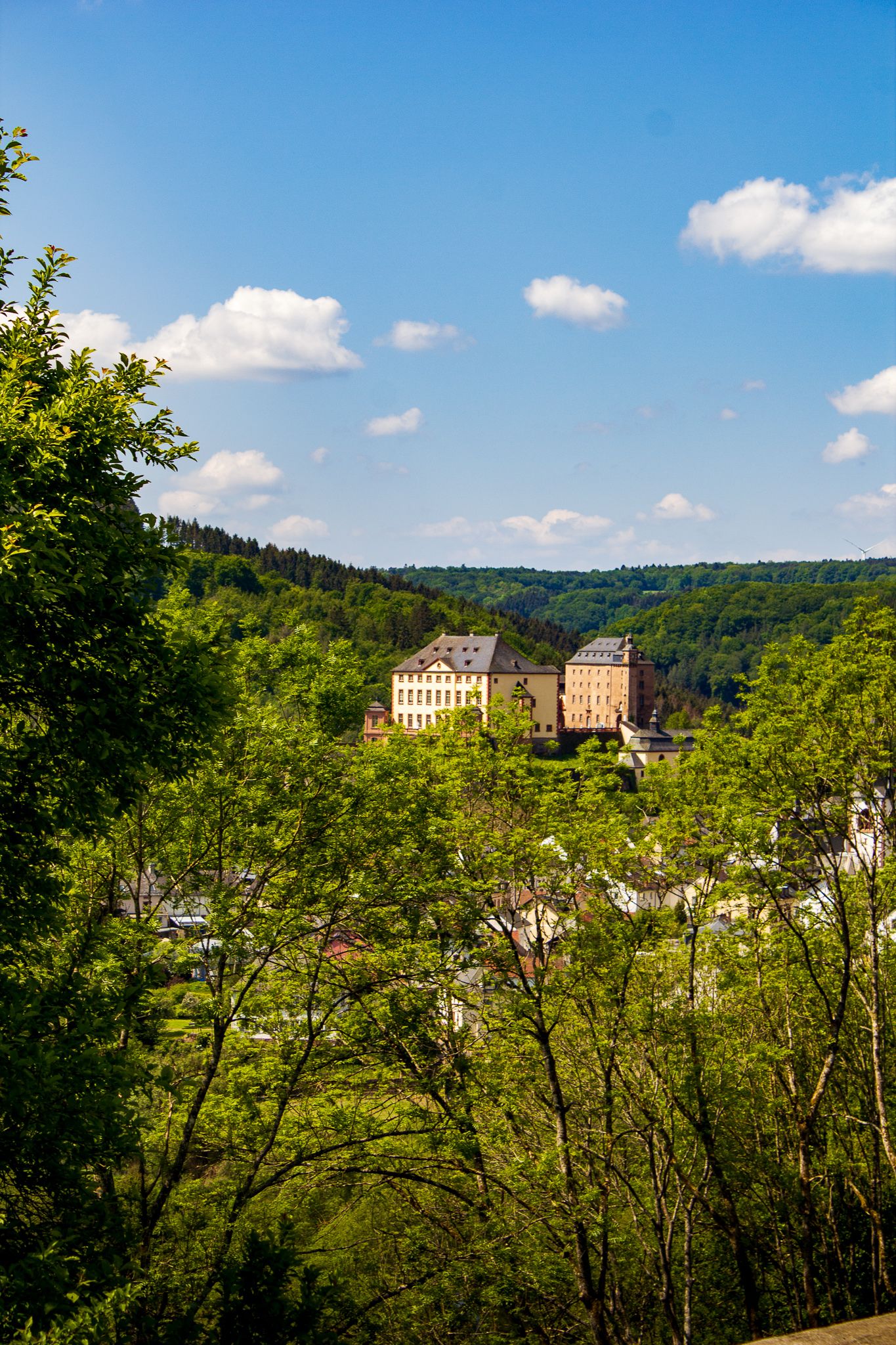 Lockere Obstbaumbestände geben der Südeifel ihr typisches Gesicht. Tiefgrüne Wälder wechseln sich ab mit malerischen Wiesen und Weiden, auf denen Kühe genüsslich ihr Gras kauen. Eine idyllische Landschaft, gesprenkelt mit zahlreichen Burgen und Schlössern, welche teils als Ruinen, teils jedoch auch in ihrer vollen Pracht erhalten sind. Besonders eindrucksvoll thront Schloss Malberg auf einem Felssporn über dem Kylltal, und auch Burg Neuerburg, die größte noch erhaltene Burganlage des Kreises Bitburg-Prüm, dominiert das namensgebende Städtchen. Die tiefe religiöse Verwurzelung der Region wird durch eindrucksvolle Bauten wie die St. Salvator Basilika in Prüm verdeutlicht.