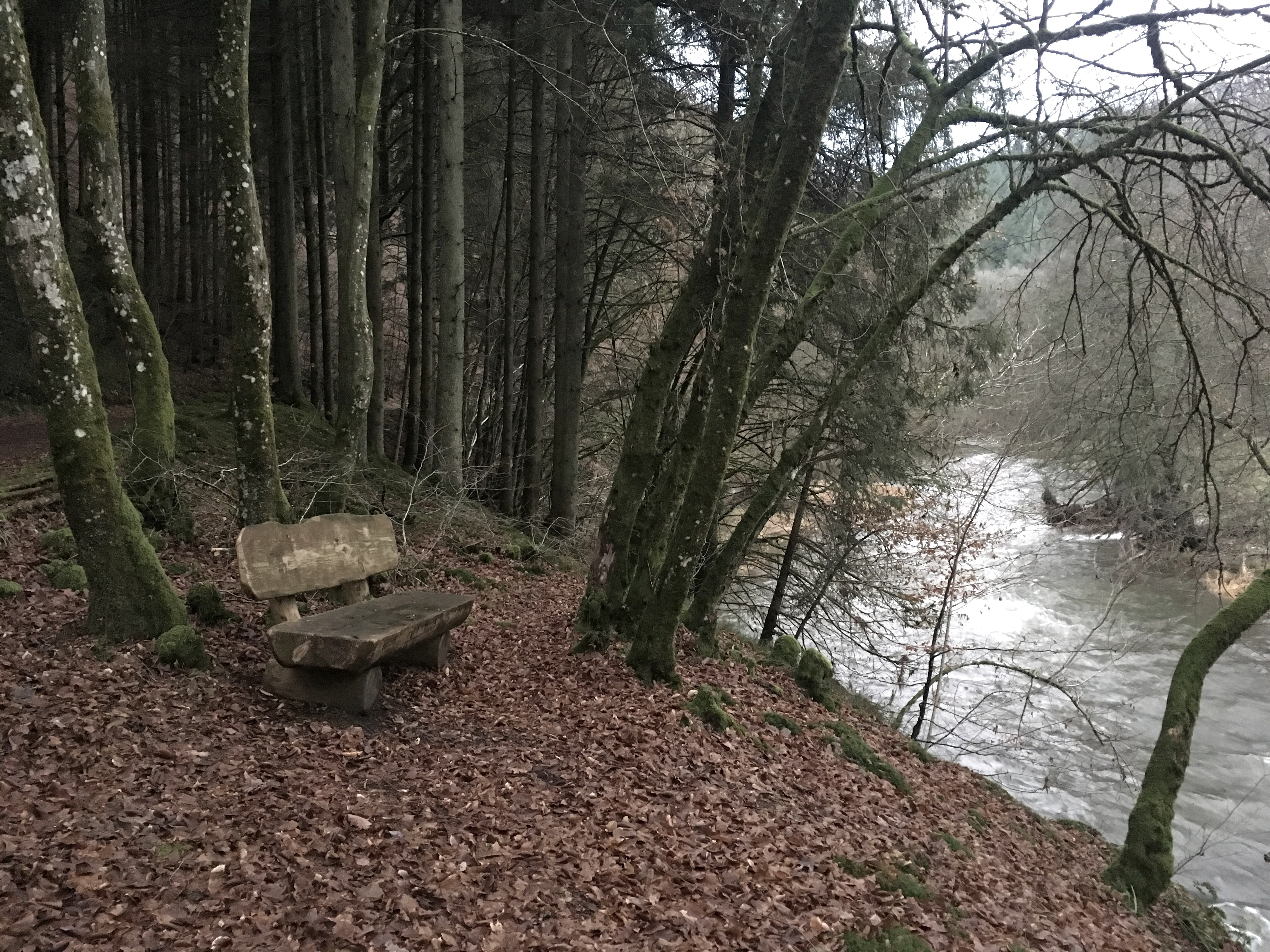 Het pad steekt nu rechtsaf de Prüm over en leidt samen met de hoofdwandelroute 7 van de Eifelverein terug aan de andere kant van de rivier richting Echtershausen. Kort voor de brug gaat het weer bergopwaarts. Omgeven door weiden, velden en bossen kun je hier genieten van het idyllische Eifellandschap.