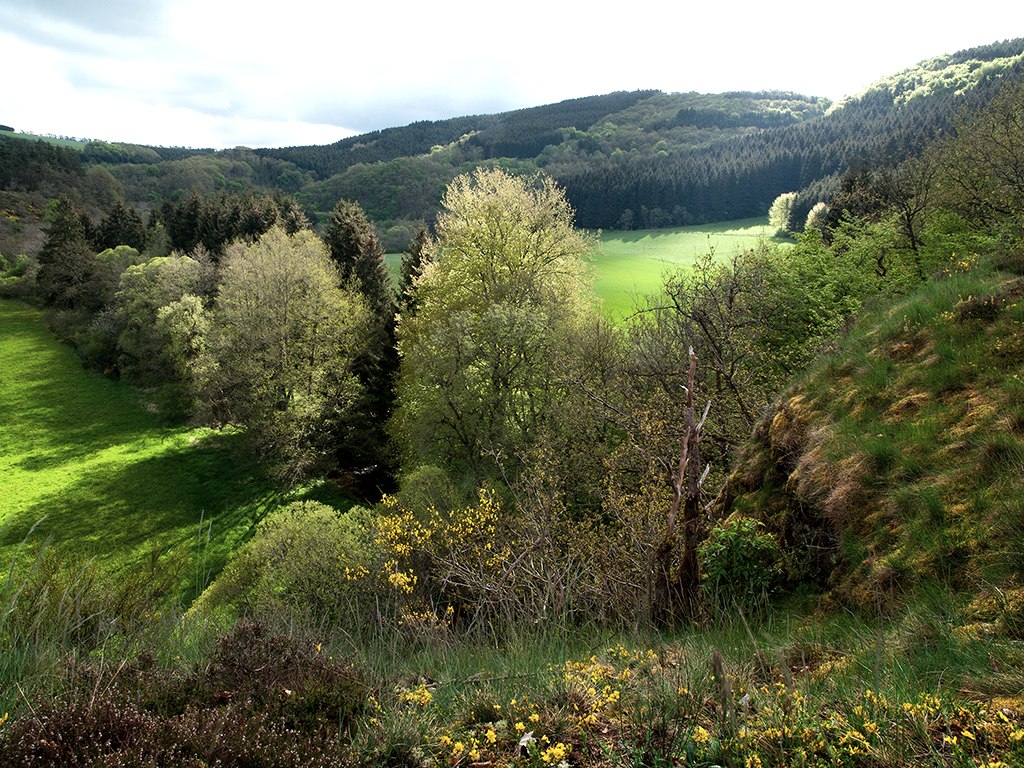 Eerst zijn ze geïsoleerd, de goudgele vlekken die de lente aankondigen. En plotseling zijn er hele tapijten van bloeiende brem die een paar dagen later weelderig de hellingen in het Irsen-dal bedekken en triomferen als Eifelgoud. Het is de wake-up call voor duizenden en duizenden kleine wezentjes om tevoorschijn te komen of uit het ei te komen. Bezige bijen, kevers en vlinders bezoeken de felgele bloesems, laten ze ontploffen en verspreiden het op hun buik en rug bestoven bremstuifmeel.