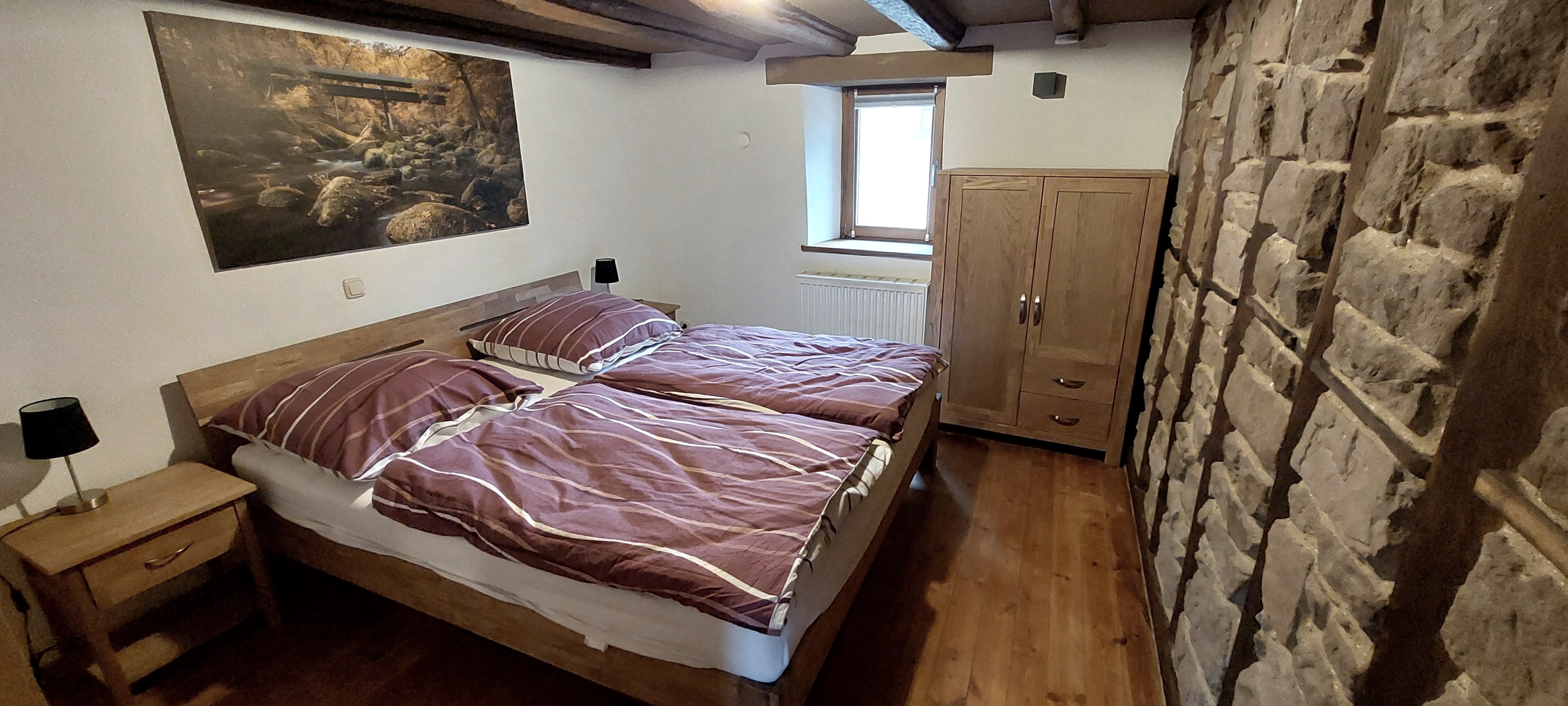 Ons liefdevol gerenoveerde, rustieke vakantiehuis "Haus Messern" ligt in het mooie Eifeldorp Rittersdorf. De bierstad Bitburg kan worden bereikt in 5 minuten met de auto of gemakkelijk via het fietspad (4km). Het huis heeft een totale oppervlakte van ca. 120 m² met 6 slaapkamers voor 10 personen. De originele houten trap leidt naar 2 badkamers, een speel- en leeskamer en een woon/eetkamer op 4 verdiepingen. Een selectie van boeken, informatiemateriaal en bordspellen zijn beschikbaar voor de gasten in de speel- en leeskamer. De moderne en individuele inrichting zorgt voor een gezellige sfeer. Lage plafonds, schuine wanden en vloeren en steile trappen geven het Eifelhaus zijn unieke karakter. De volledig uitgeruste inbouwkeuken heeft een keramische kookplaat, magnetron, koffiezetapparaat, koelkast met vriesvak en vaatwasser. Er is ook een aparte wasmachineruimte. We bieden gratis internet. Naast gratis parkeren direct bij het huis, kun je op verzoek je fietsen en motoren stallen in onze garage. De omgeving is ideaal om te fietsen (fietspad naar Bitburg) en te wandelen.