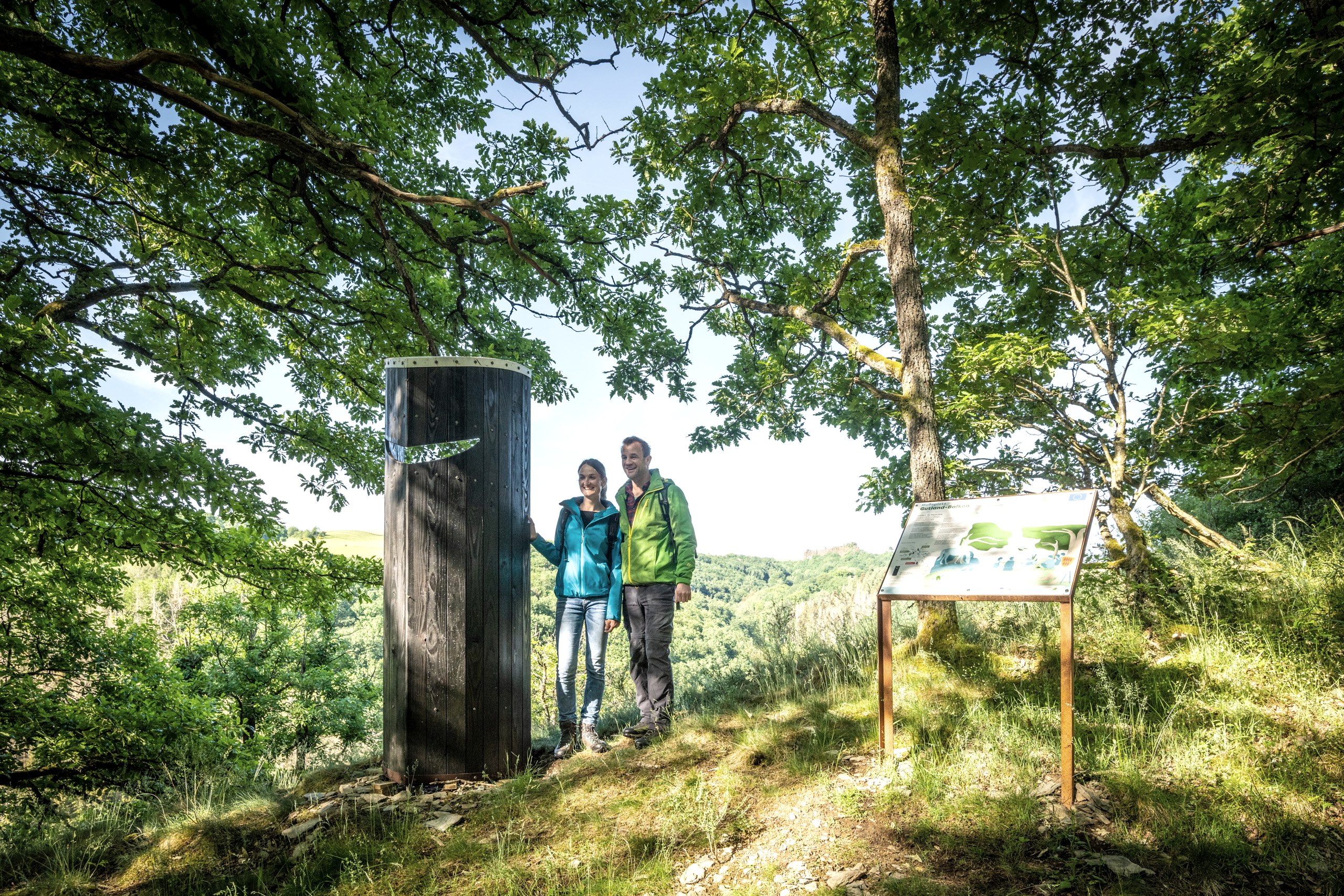 Op het Neuer-Burg-Weg beleef je het "bronmateriaal" van een sprookje uit de Middeleeuwen. In vier bedrijven beleef je een dramatisch liefdesverhaal op de ontspannen plekken langs de weg. In middeleeuws aandoende verzen vertelt ridder Kuno von Falkenstein zelf over zijn hofmakerij, de hinderlaag van de graaf van Vianden, zijn wonderbaarlijke redding door een holle eik en zijn huwelijk met jonkvrouw Ida in de slotkapel. Rust uit in de holle boom, huiver bij de wraakzucht van de machtige graaf, kruip tegen elkaar aan en geniet van de zitjes in de loges.