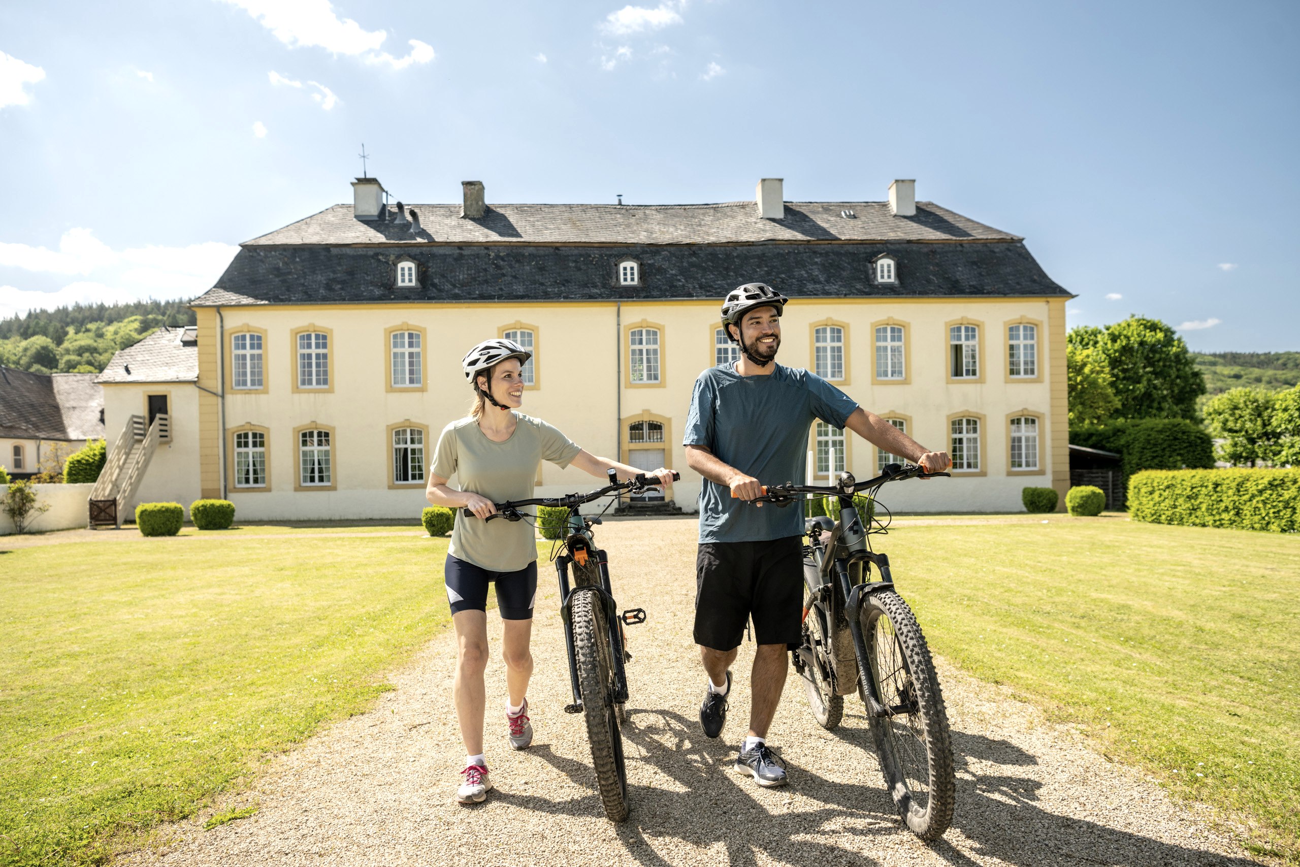 Wie voor de 65 kilometer lange route van het Nims-fietspad kiest, moet ondanks het al met al dalende profiel gedurende de eerste 45 kilometer rekening houden met enkele soms flinke stijgingen. Vanaf Bitburg, waar een bezoek aan de Markenerlebniswelt van het biermerk Bitburg de moeite loont, kun je dan op het voormalige spoortracé tot aan Irrel des te meer ontspannen. Uniek: metershoge sculpturen van rode Eifelse zandsteen 'groeien' uit de velden en bieden daarmee een stukje kunstbelevenis tijdens het Nims-fietspad. Ook een kijkje