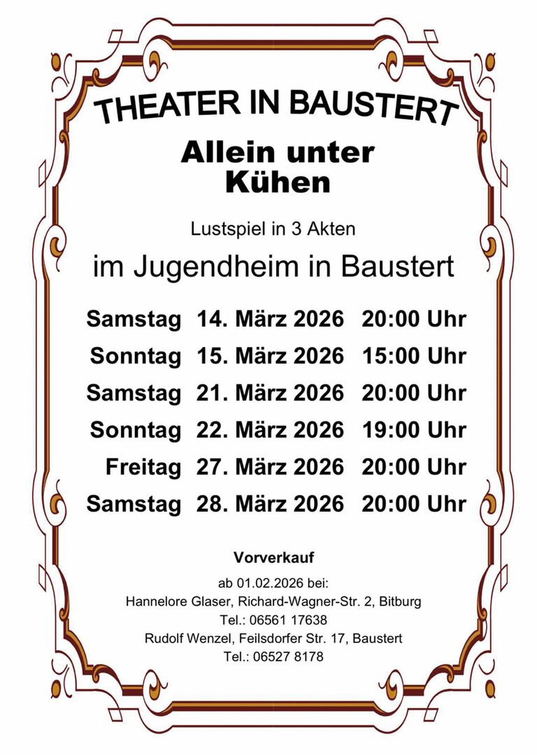 De komedie in drie bedrijven van Cornelia Willinger "Alleen onder Koeien" wordt opgevoerd.