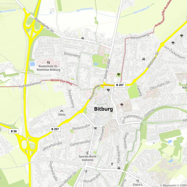 De toeristeninformatie van het Bitburger Land ligt in het hart van de stad Bitburg aan de Römermauer, direct naast het stadhuis van Bitburg en de Bitburger Erlebniswelt. Wij geven informatie over excursiebestemmingen, wandel- en fietstochten.