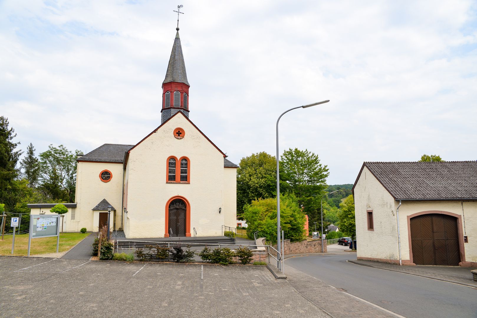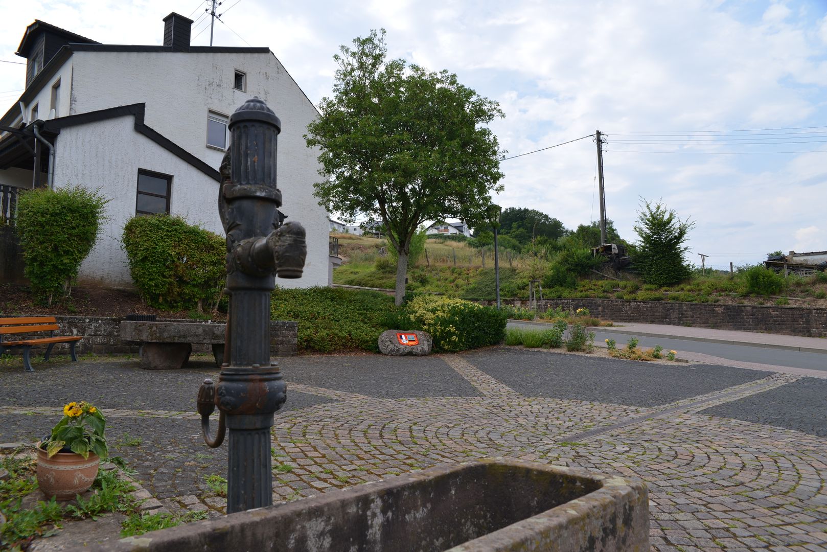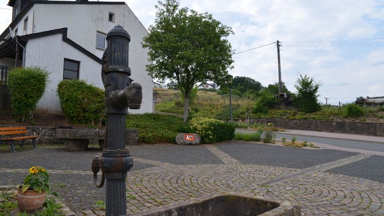 Het begint op het dorpsplein "Platz Montaigut" in Wißmannsdorf (tegenover de bushalte). Daar staat een wegwijzer om je te helpen de weg te vinden.