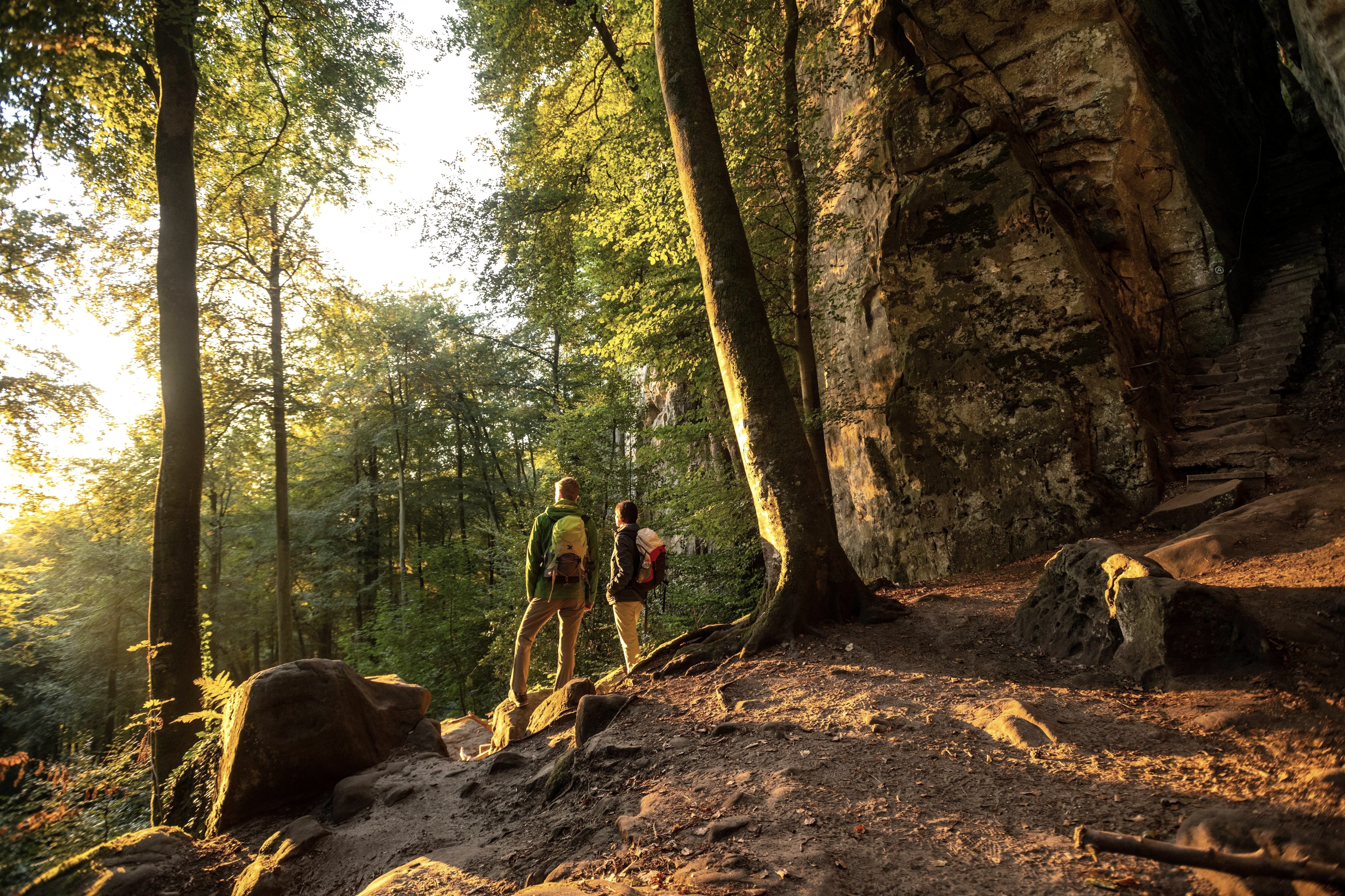 Was gibt es Schöneres, als sich nach einer ausgedehnten Wanderung mit kulinarischen Köstlichkeiten zu belohnen? Ausgestattet mit einem reichhaltigen Lunchpaket wandert ihr durch den NaturWanderPark delux. Entdeckt die Teufelsschlucht, mit ihren bizarren Felsformationen, genießt den leckeren Genovevahöhlenkuchen in der gleichnamigen Höhle, überwindet Hängebrücken und abenteuerliche Pfade. Ihr streift Hopfenfelder und Obstwiesen, deren Erträge sich abends veredelt auf Eurem Tisch wiederfinden.