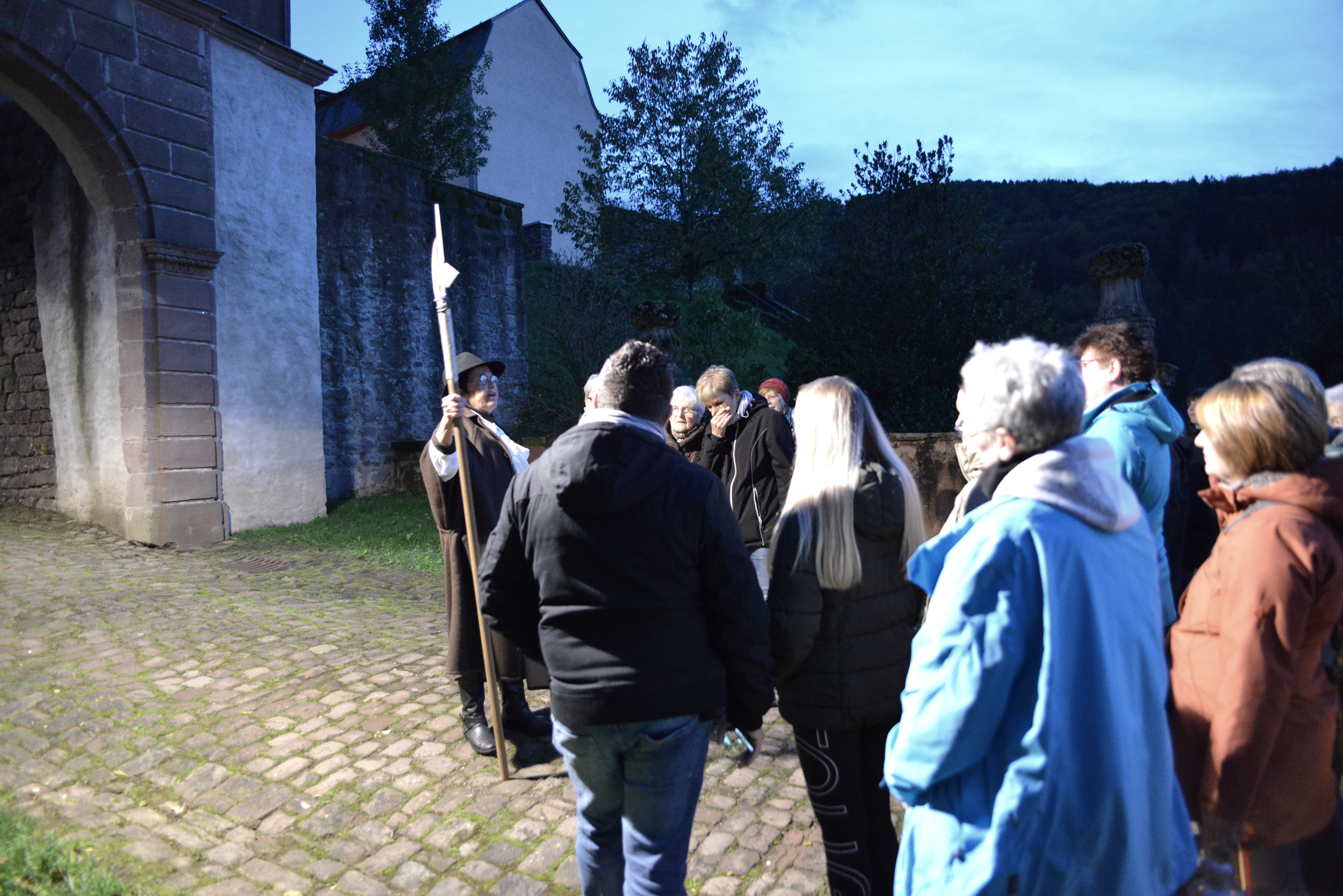 Er kennt alle Sagen, Geheimnisse und Anekdoten, die sich um Malberg und das Schloss ranken. Auf seinem Weg vom Schlosshof bis zur Kyllbrücke erzählt