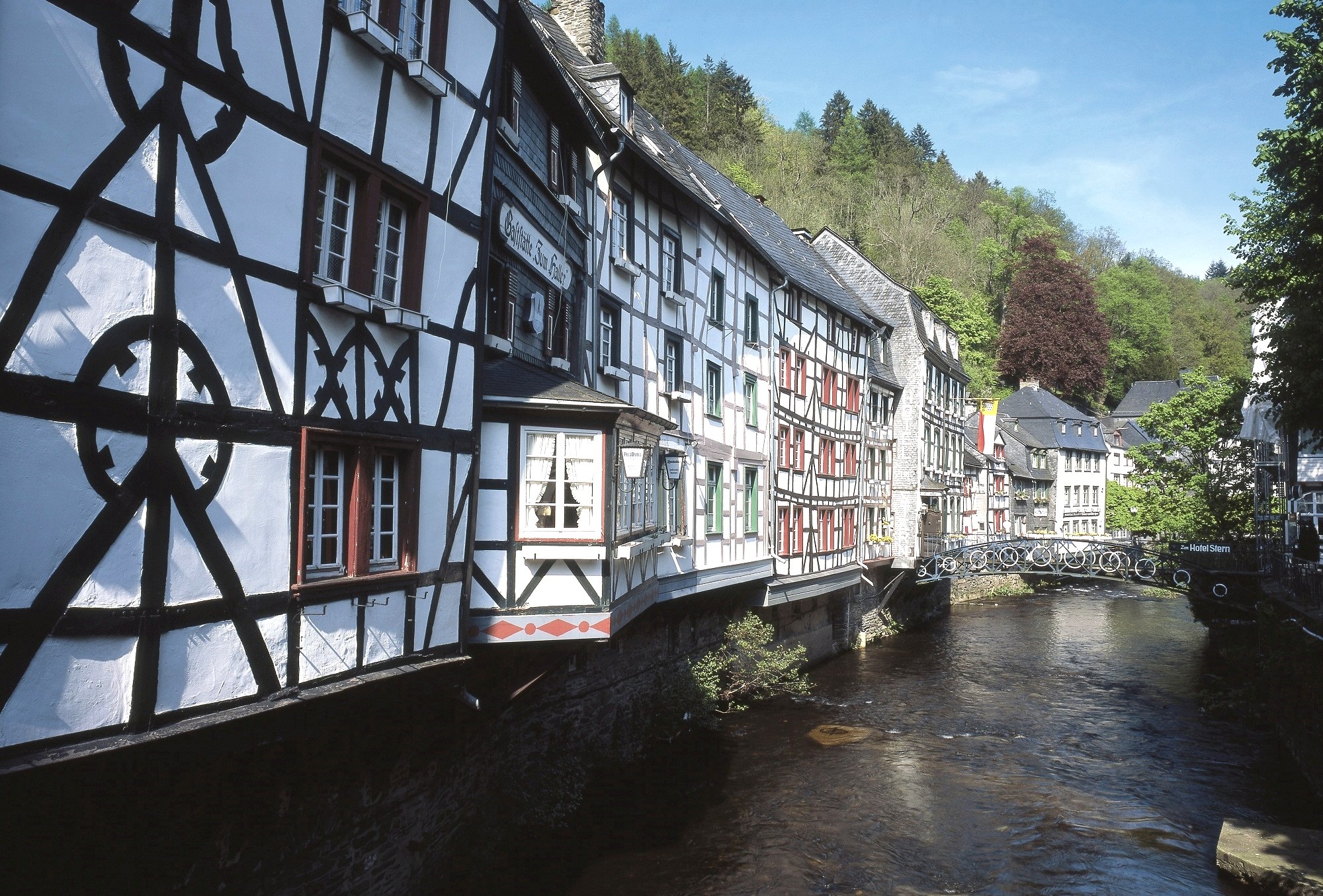 Monschau ist heute ein touristisches Städtchen mit verwinkelten Gassen und schiefergedeckten Fachwerkhäusern. An die Blüte der Tuchherstellung erinnern die prachtvollen Patrizierhäuser, z. B. Rotes Haus – heute Museum oder der Handwerkermarkt – ehem. Tuchweberhalle.