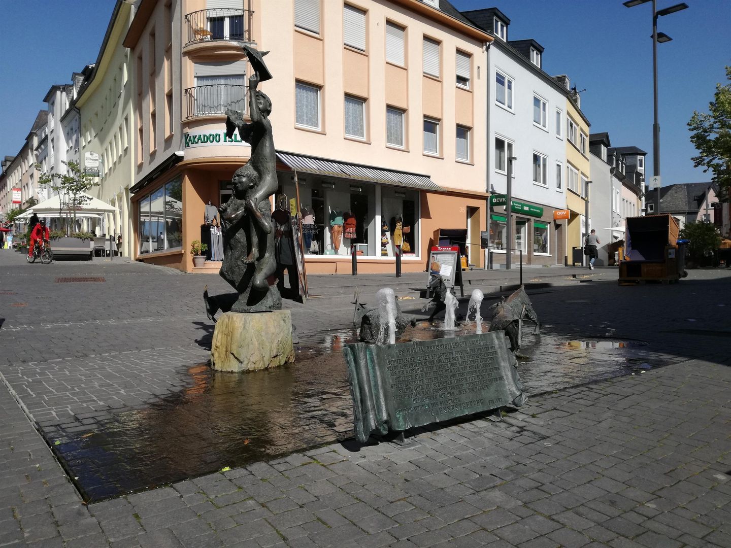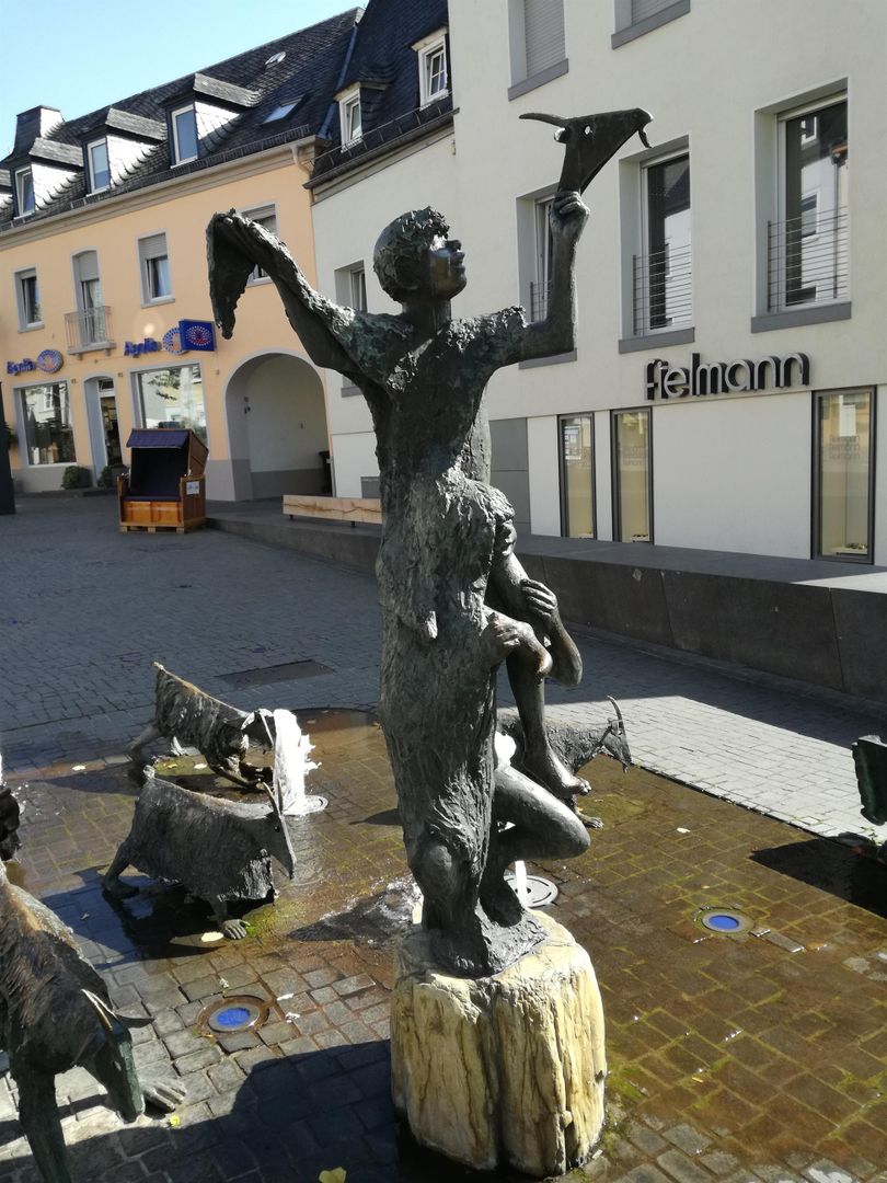 Der "Gäßestrepper"-Brunnen in der Hauptstraße (Fußgängerzone) ist eine von zahlreichen Skulpturen, die die Innenstadt optisch beleben. Er bezieht sich auf die Stadtlegende, wonach Bitburg während des Dreißigjährigen Krieges (1618-1648) von schwedischen Söldnertruppen belagert wurde. Der Versuch, die Stadt auszuhungern schlug fehl, weil die hungrigen aber auch gewitzten Bitburger zu einer Finte griffen: Die Kinder und Jugendlichen zogen (streppen) sich die Felle der in der Not geschlachteten Ziegen (Gäße) über. So verkleidet über die Stadtmauer laufend gaukelten sie den Belagerern nicht vorhandenen Überfluss an Nahrung vor. Die Schweden zogen ab, die Stadt war gerettet.