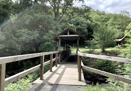 Eine spektakuläre Aussicht ins Prümtal. Die Hängebrücke ist seit dem 30. September 2023 geöffnet.