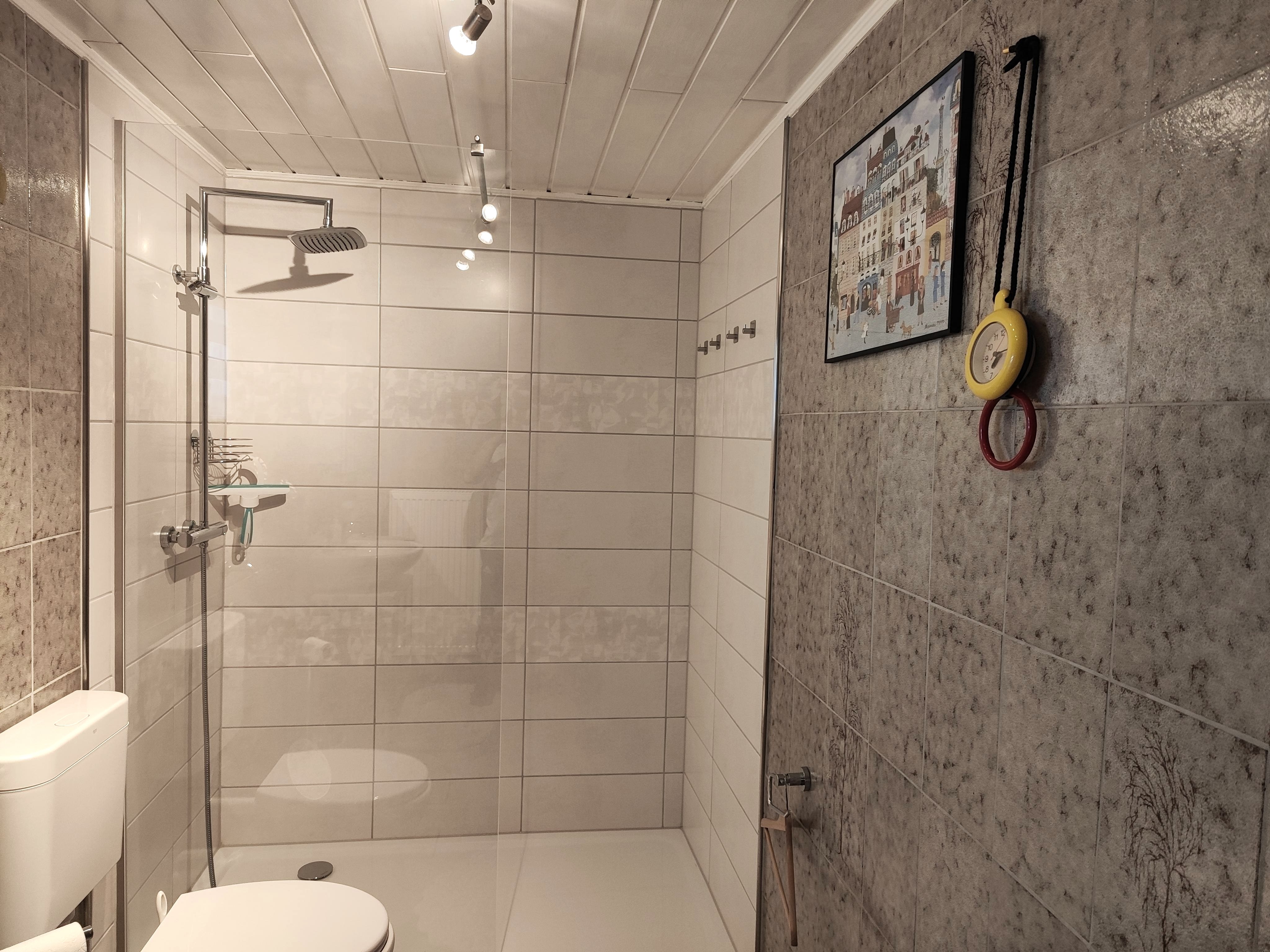 Die Wohnung verfügt über eine Küche, ein Wohnzimmer mit Schlafcouch, ein Schlafzimmer und ein Badezimmer mit Walk-In Dusche.